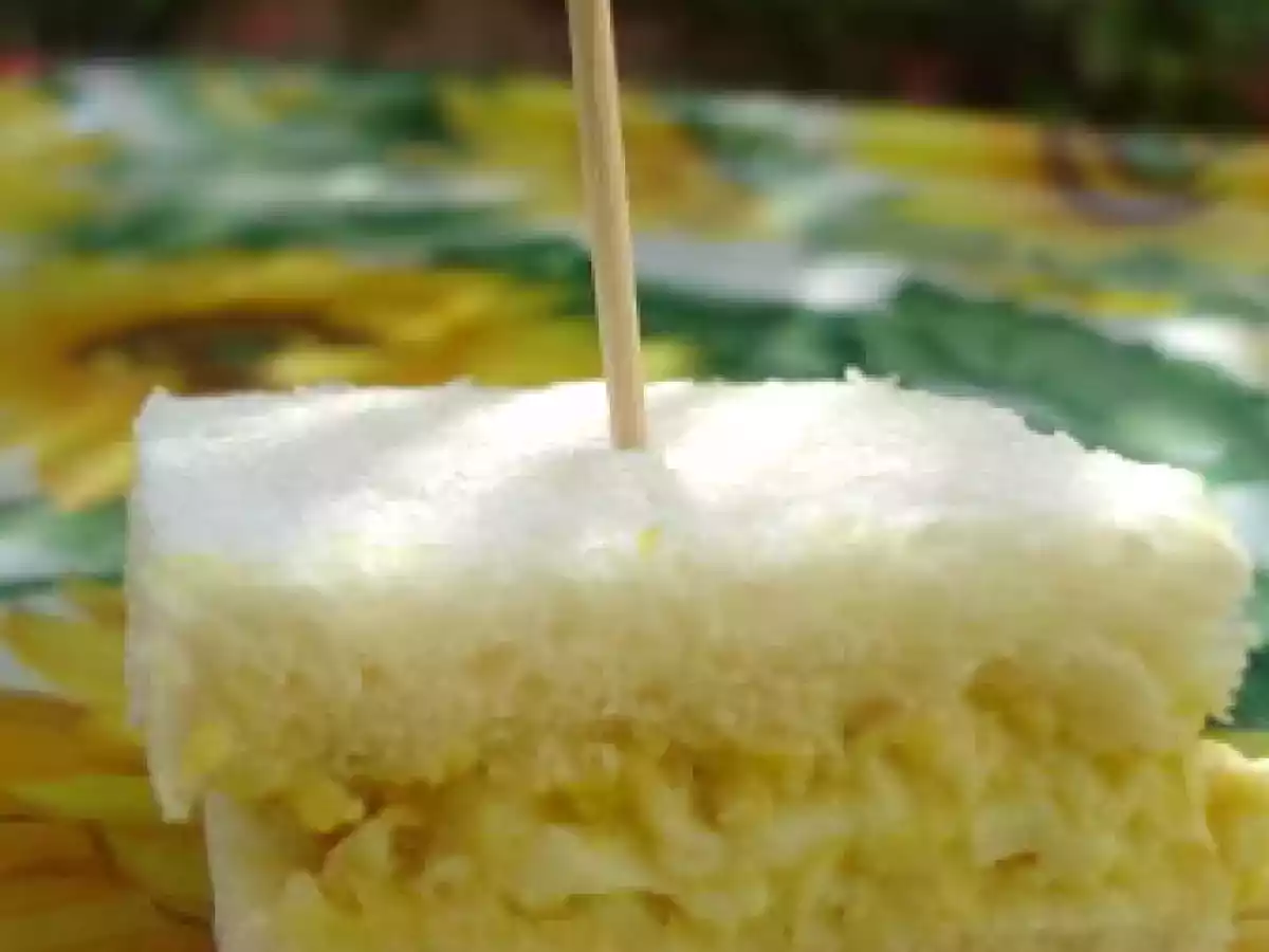 Minis sandwiches à l'anglaise : oeuf-curry Apéritiffacile35 min224 Kcal Envoyer cette recette à un ami Imprimer cette page Poser une question à l'auteur Publier votre photo de cette recette Ingrédients 6 Pour 24 minis sandwiches : 12 tranches de pain de mie "blanc" sans croûte 4 oeufs 1 cuillère à soupe de mayonnaise 1 cuillère à thé de curry Coût estimé: 1.7Euros€ (0.28€/part)