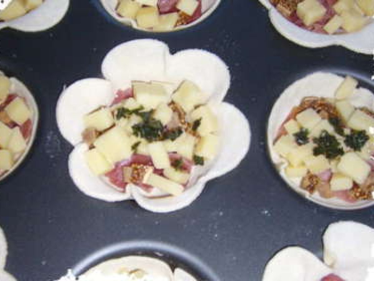 Bouchées au comté, figues , jambon cru et basilic PrécédentSuivant Apéritiffacile35 min508 Kcal Envoyer cette recette à un ami Imprimer cette page Poser une question à l'auteur Publier votre photo de cette recette Ingrédients 4 1 pâte feuilletée 150 g de Comté ( fruité pour moi ) 100 g de jambon cru 40 g de figues sèches 4 càs de basilic haché .
