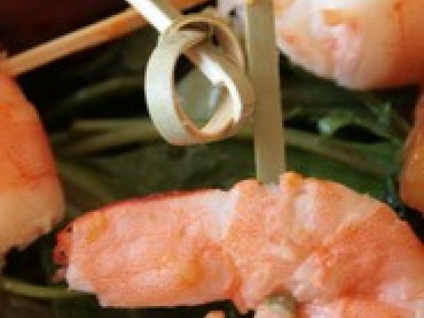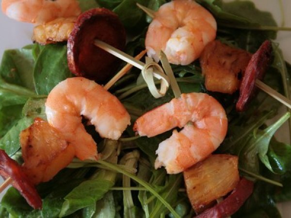 Minis-brochettes crevettes, ananas, chorizo sans gluten