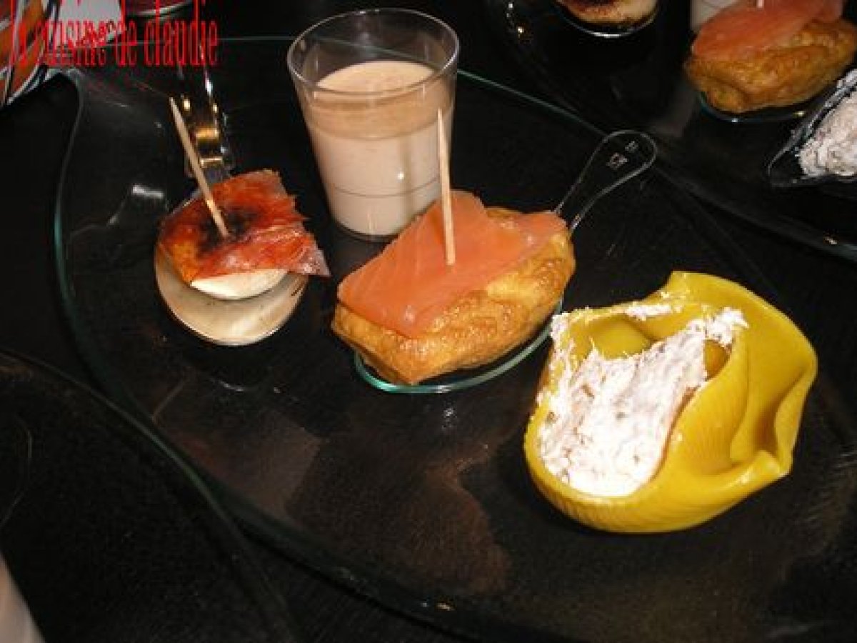 Petite farandole d'amuses bouches votez maintenant PrécédentSuivant Apéritiffacile15 min1185 Kcal Envoyer cette recette à un ami Imprimer cette page Poser une question à l'auteur Publier votre photo de cette recette Ingrédients 1 Pour la farce: une boite de saint moret une boite de thon herbe de provence Pour la pana cotta: 8 cl de crème 8 cl de lait 1 feuille de gélatine 5 tomates séchées 4 tranches de chèvre