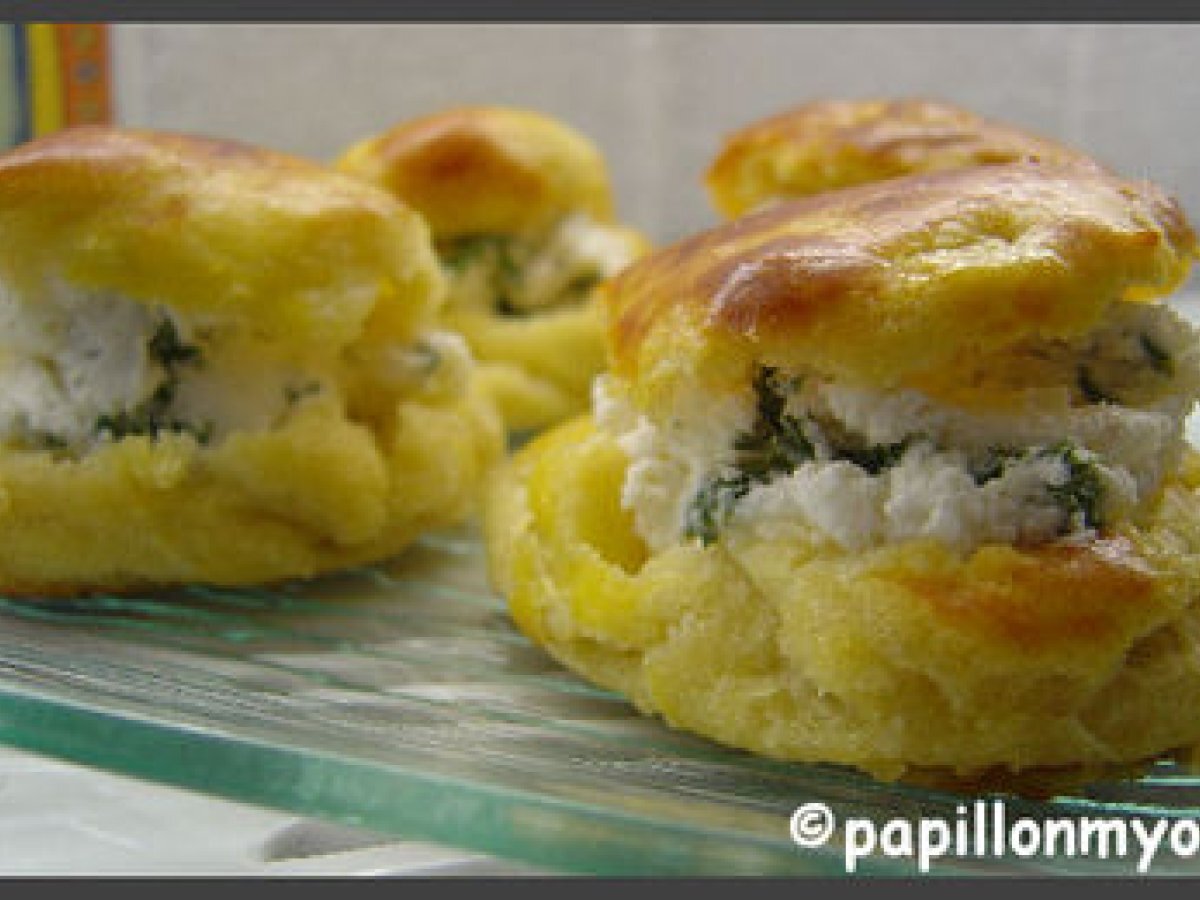 Petits choux au fromage de chevre et herbes votez maintenant Apéritiffacile1 heure Envoyer cette recette à un ami Imprimer cette page Poser une question à l'auteur Publier votre photo de cette recette Ingrédients 4 150 g de farine 2 oeufs + 1 jaune 100 g de margarine 300 g de fromage de chèvre frais Fines herbes basilic persil 2 gousses d'ail 10 cl d'huile d'olive 3 à 5 cuillères à café d'oignons semoule 1 à 2 cuillères à café de sauce/pesto basilic (type Reflet de France) Sel poivre