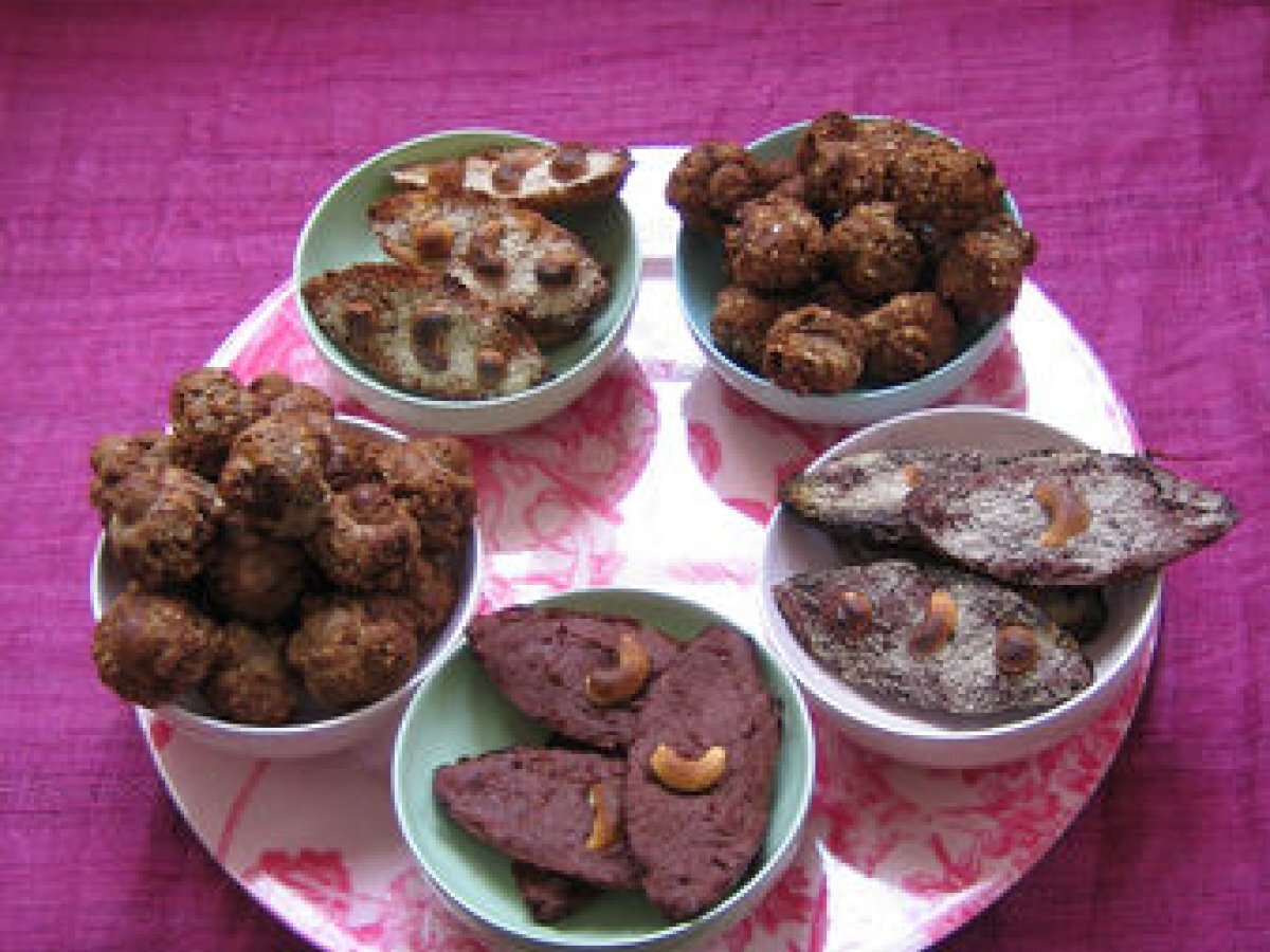 Petits fours à la farine de sarrasin Apéritifmoyen25 min Envoyer cette recette à un ami Imprimer cette page Poser une question à l'auteur Publier votre photo de cette recette Ingrédients 6 6 cuillères à soupe de farine de sarrasin 4 cuillères à soupe de sucre de coco 1 pincée de bicarbonate de soude 1 pincée de sel 2 cuillères à soupe de purée de noisette bio 1 oeuf 1 cuillère à soupe d'eau 80 g de noisettes concassées 1 cuillère à soupe de graines de sésame 1 cuillère à soupe de purée de marron noisettes entières, noix de cajou, sucre en poudre.