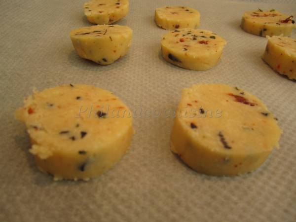 Ôtez le film enveloppant vos boudins de pâte. Découpez environ 12 rondelles dans chaque boudin et placez-les sur votre plaque de four recouverte d'un papier sulfurisé.