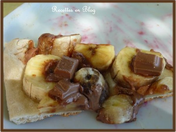 Pizza bananes chocolat au lait au barbecue PrécédentSuivant Apéritiffacile15 min386 Kcal Envoyer cette recette à un ami Imprimer cette page Poser une question à l'auteur Publier votre photo de cette recette Ingrédients 4 1 pâte à pizza recette ici 4 bananes 100 g de chocolat au lait Coût estimé: 2.9Euros€ (0.73€/part)