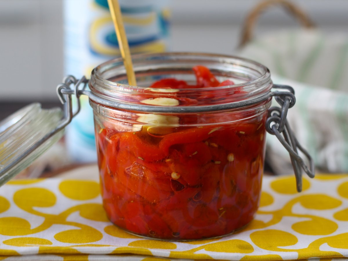 Nous vous recommandons d'utiliser des poivrons rouges ou jaunes, qui sont plus doux. Vous pouvez aussi faire un mélange pour pour avoir des poivrons marinés colorés !