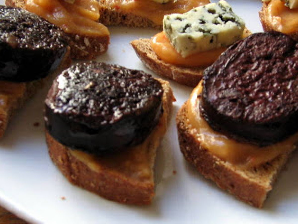 Ces crostinis se mangent aussi bien avec un chèvre, ou bien du boudin noir, à vous de jouer!