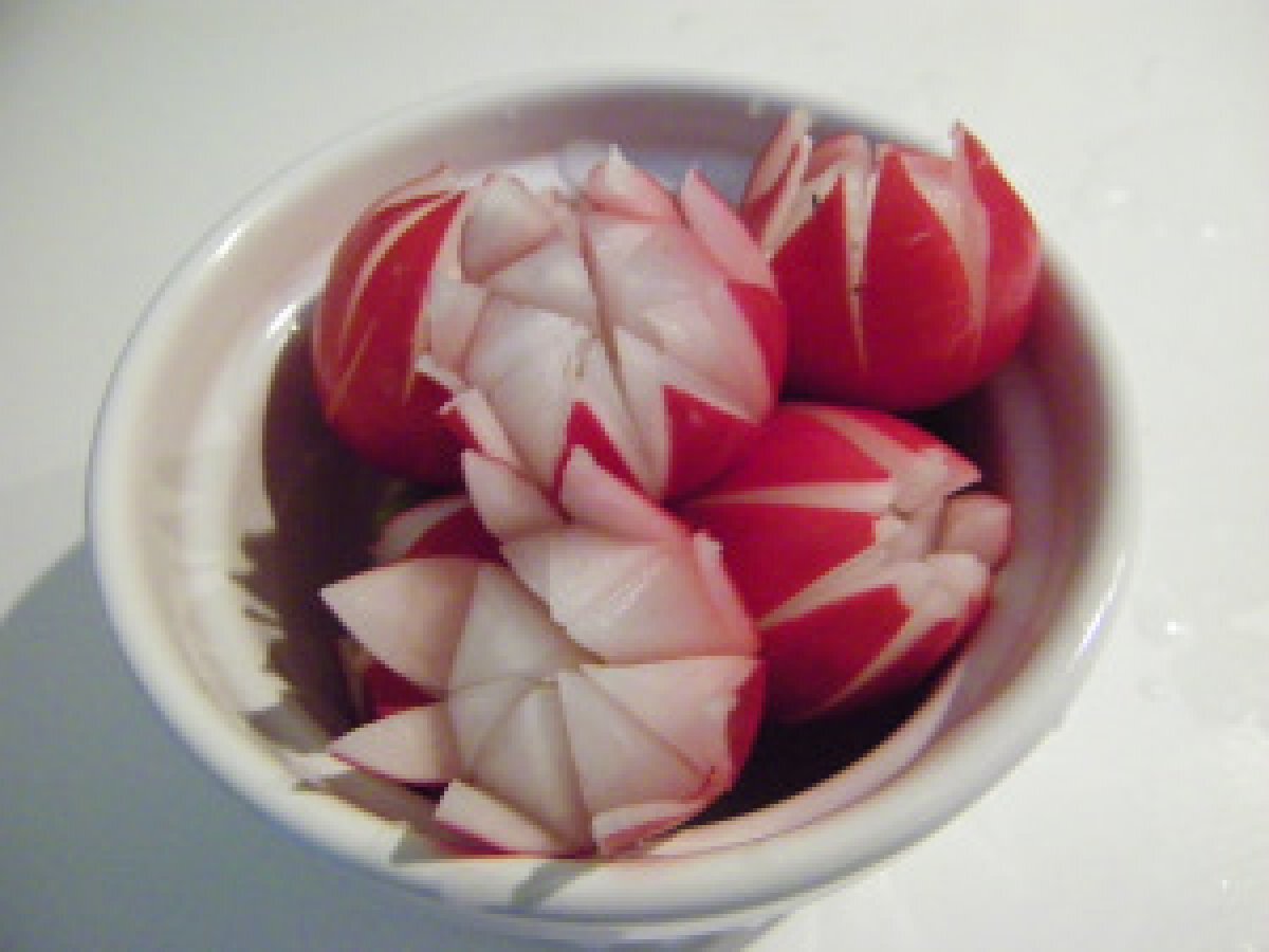 Radis fleurs et bonbons de tomates PrécédentSuivant Apéritiffacile22 min Envoyer cette recette à un ami Imprimer cette page Poser une question à l'auteur Publier votre photo de cette recette Ingrédients 4 quelques radis glaçons une grosse pincée de gros sel Pour le bonbon de tomate : huile d’olive une demi feuille de brick une tomate cerise un carré de mozzarella