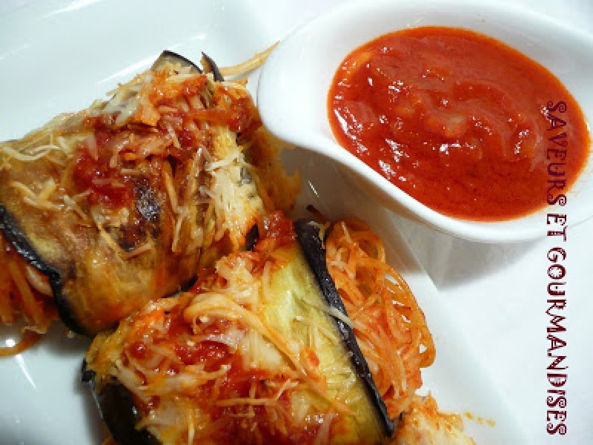 Roulés d'aubergines aux spaghetti et mozzarella. PrécédentSuivant Apéritifmoyen30 min723 Kcal Envoyer cette recette à un ami Imprimer cette page Poser une question à l'auteur Publier votre photo de cette recette Ingrédients 4 2 grosses aubergines 200 gr de spaghetti 2 boules de mozzarella 200 gr de gruyère râpé De l'huile d'olive. Sauce tomates : 2 oignons 500 ml de coulis de tomates 2 gousses d'ail 1 feuille de laurier 1 branche de thym ½ cube de bouillon de légumes 1 pincée de sucre Poivre Un peu de pâte à piment Eau Coût estimé: 6.61Euros€ (1.65€/part)