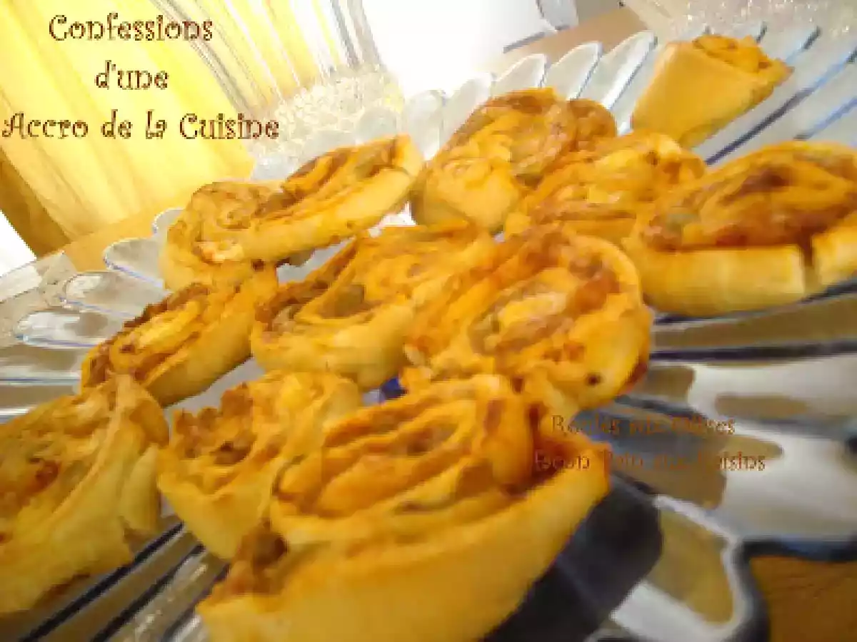 Roulés salés façon pain aux raisins Apéritiffacile25 min Envoyer cette recette à un ami Imprimer cette page Poser une question à l'auteur Publier votre photo de cette recette Ingrédients 5 1 rouleau de pâte à pizza 1 cuillère à soupe de concentré de tomates 2 cuillères à soupe de gruyère 2 Vache qui rit 1 douzaine d'olives vertes coupées en rondelles sel, 1 cuillère à soupe d'herbes de Provence