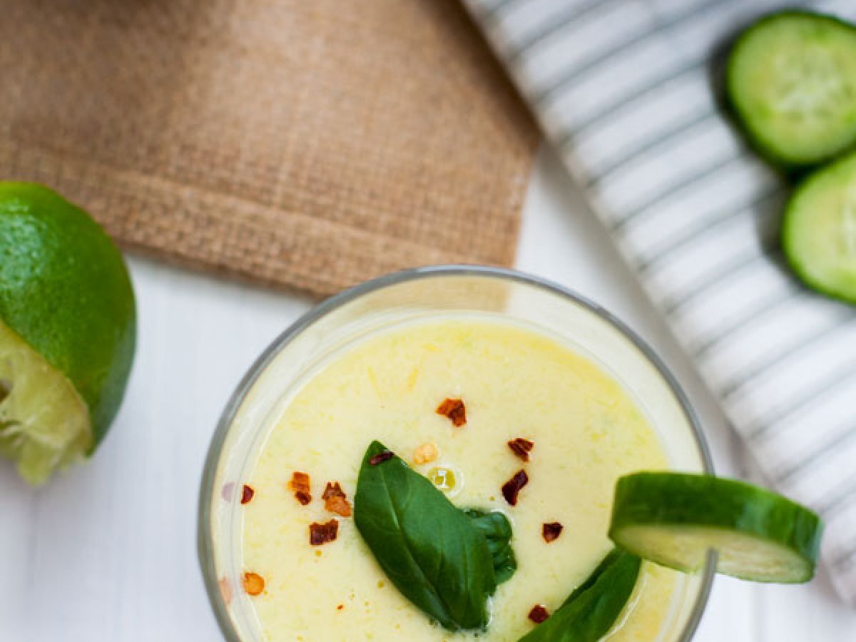 Soupe froide à la mangue et aux concombres