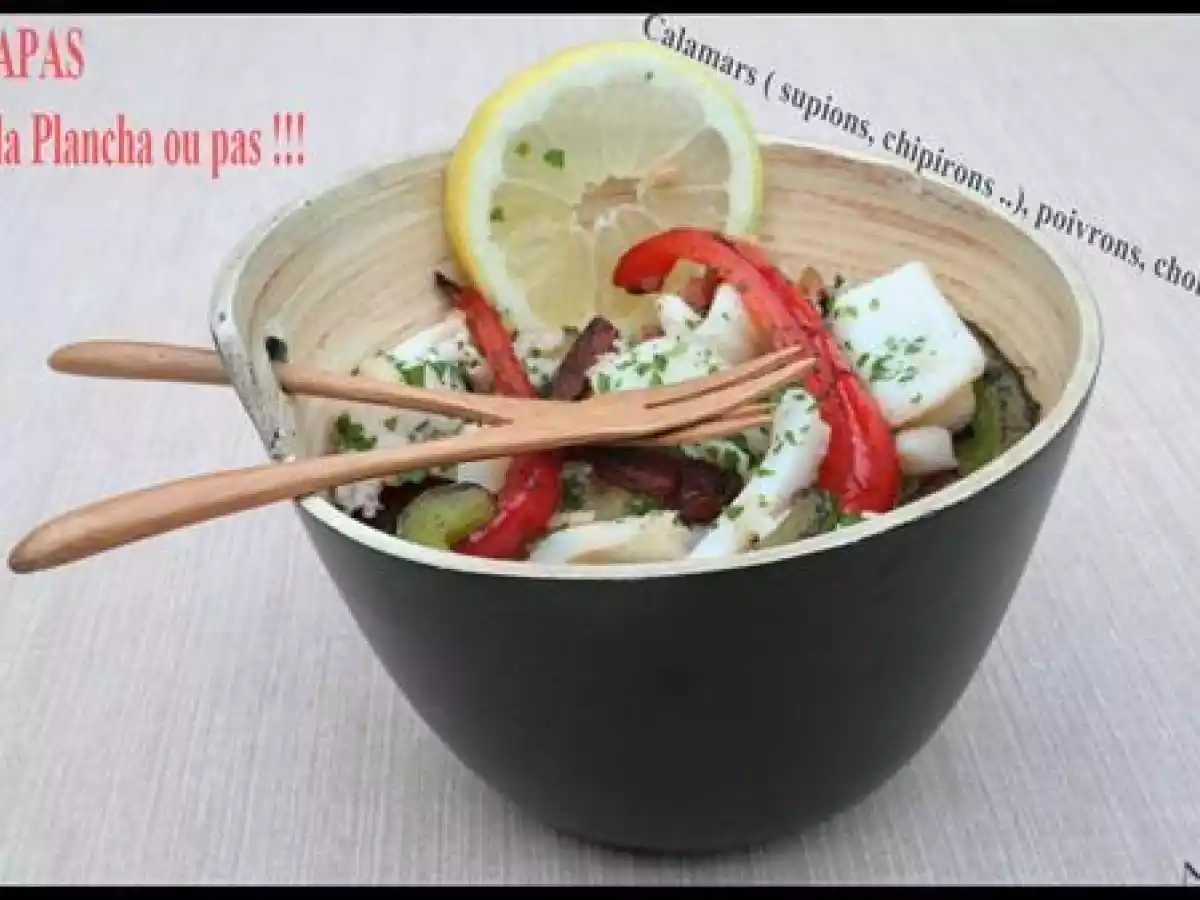 Tapas froides ou chaudes : chipirons, calamars ou supions aux poivrons PrécédentSuivant Apéritiffacile20 min548 Kcal Envoyer cette recette à un ami Imprimer cette page Poser une question à l'auteur Publier votre photo de cette recette Ingrédients 4 600 g de Chipirons ou supions ou calamars Marinade au piment espelette: 6 cuillères à soupe d' Huile d'olive 2 Citrons 4 Gousses d'ail 1 cuillère à café de Piment d'Espelette ou du paprika 1/2 botte de Persil plat ou de coriandre Sel & Poivre 2 poivrons 15 tranche Chorizo 1 citron vert ou jaune Coût estimé: 11.98Euros€ (3€/part)