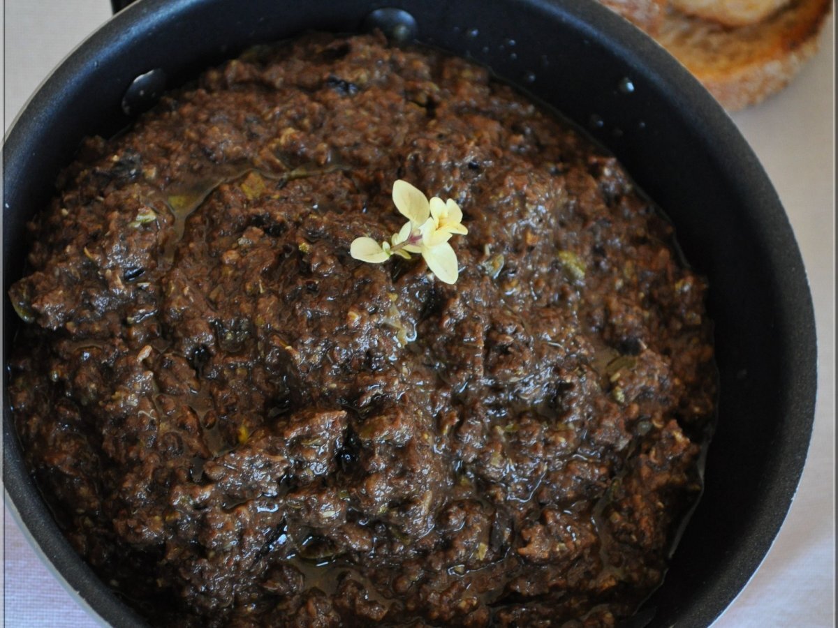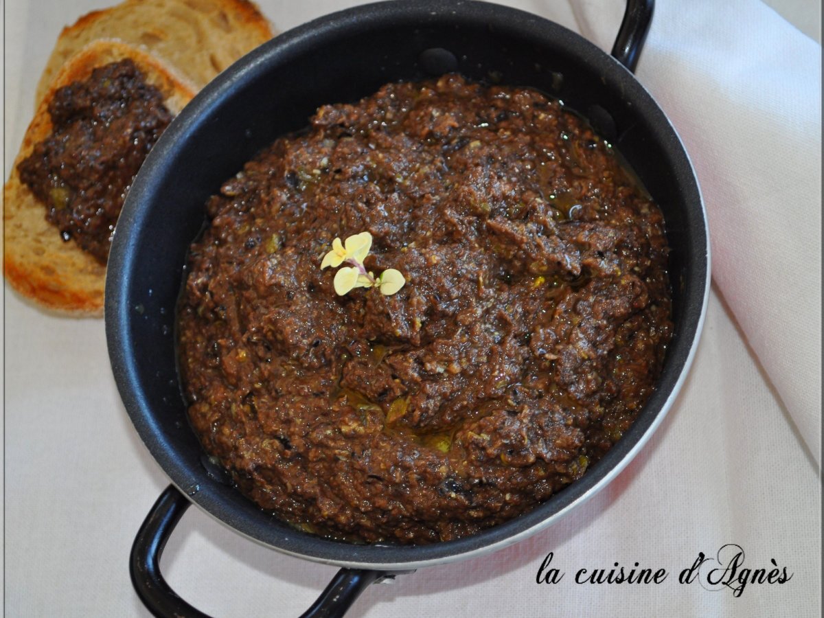 La tapenade, spécialité provençale, est une purée d’olives que l’on déguste le plus souvent sur des toasts en apéritif , du pain grillé ou en y trempant des bâtonnets dé légumes . Ici petite variante avec de l'aubergine ..un régal !