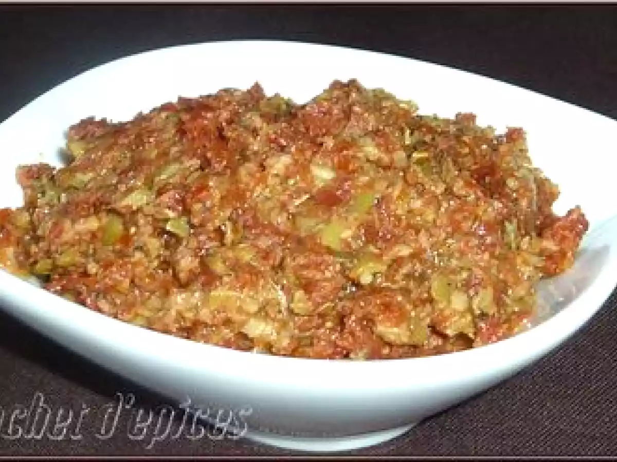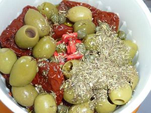 Tapenade aux olives vertes et aux tomates séchées Apéritiffacile5 min330 Kcal Envoyer cette recette à un ami Imprimer cette page Poser une question à l'auteur Publier votre photo de cette recette Ingrédients 4 120 g de tomates séchées à l'huile 100 g d'olives vertes dénoyautées 2 cuillères à soupe de pignons 5 cuillères à soupe d'huile d'olive 1 cuillère à café de câpres égouttées 1 cuillère à café d'herbes de provence 1 cuillère à soupe de jus de citron Coût estimé: 4.89Euros€ (1.22€/part)