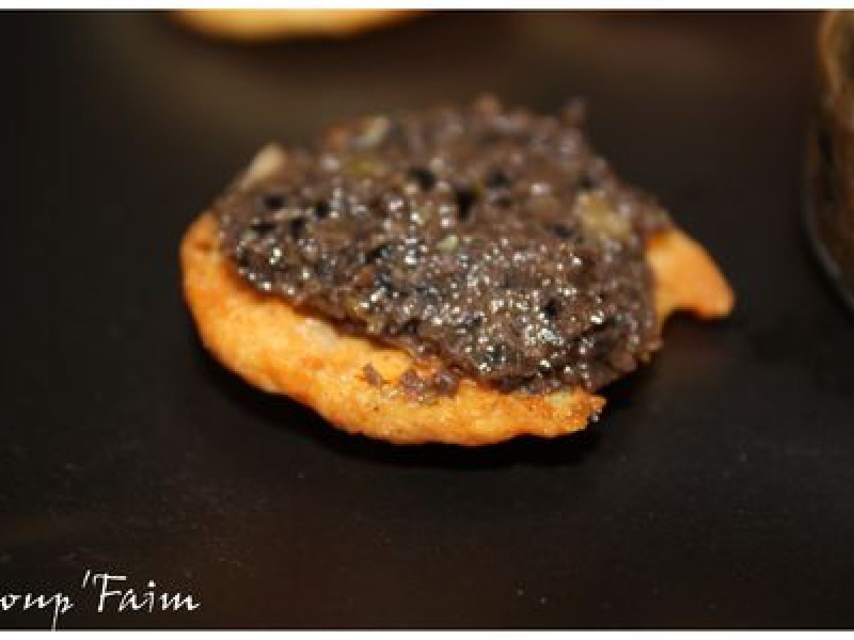 Une tapenade aux olives noires à étaler gracieusement sur des petits sablés parmesan, on adore !