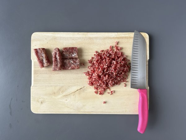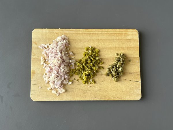 Envie d’un apéro original et ultra rapide à préparer ? Ce tartare de saucisson est une revisite express et pleine de caractère du classique steak tartare! Ici, on troque la viande crue contre du fuet finement coupé, relevé d’échalote, de cornichons, de câpres et d’un assaisonnement bien punchy à base de moutarde, sauce Worcestershire, Tabasco et jaune d’œuf. Résultat : un tartare savoureux, à la fois rustique et raffiné, prêt en quelques minutes et parfait à tartiner sur du pain grillé ;)