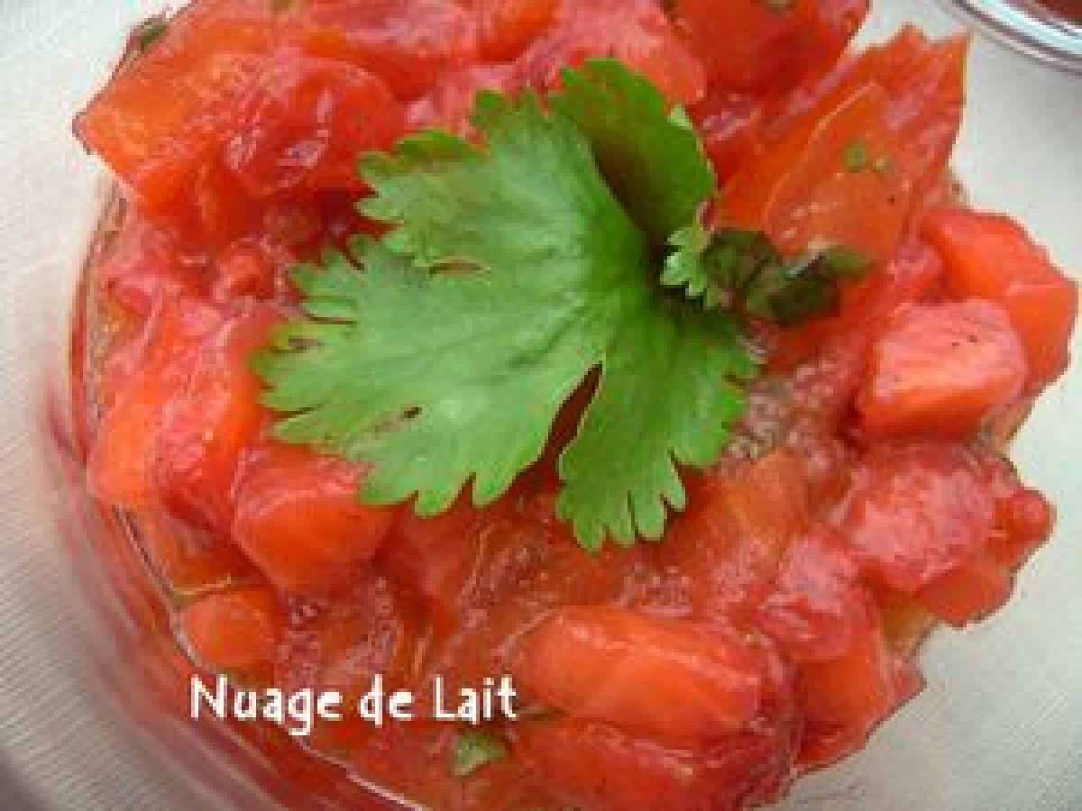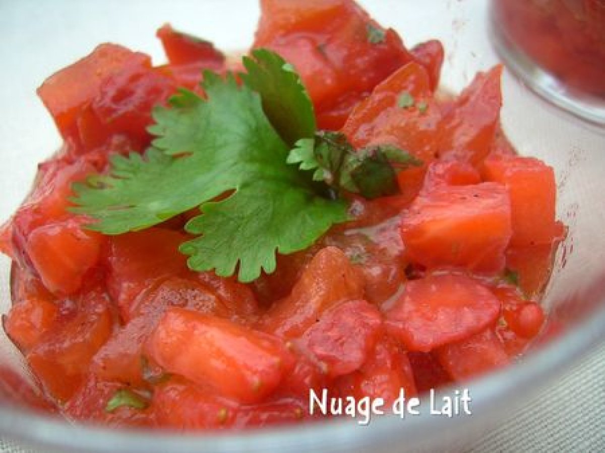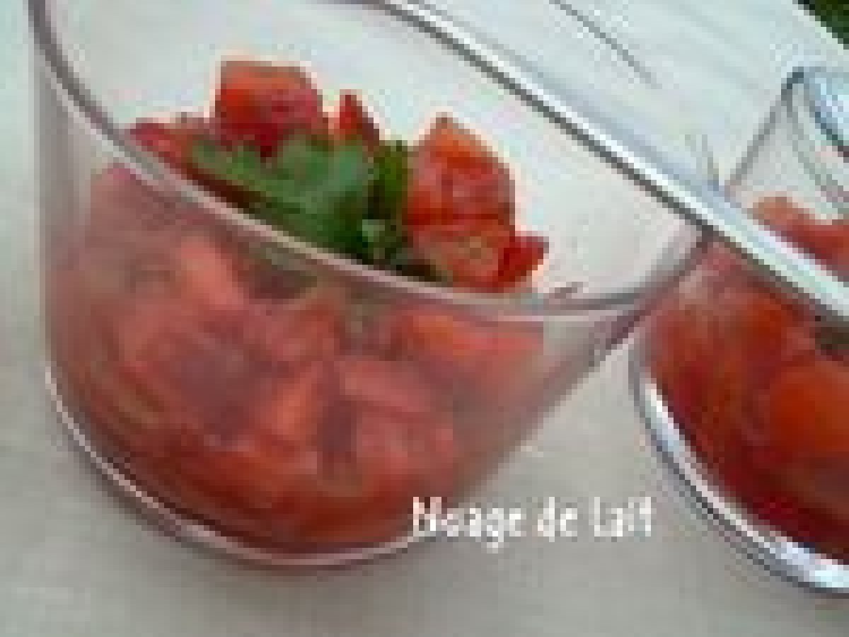 En Entrée ou en Amuse-Bouche ce Tartare Fraise/Tomate/Coriandre est idéal pour se mettre en appétit.
