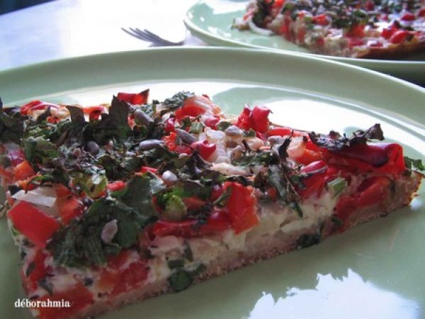 Tarte aux poivrons et au persil PrécédentSuivant Apéritifmoyen35 min Envoyer cette recette à un ami Imprimer cette page Poser une question à l'auteur Publier votre photo de cette recette Une tarte à servir chaud ou froid. Le goût est toujours à tomber! Ingrédients 6 200 g de farine d'épeautre 50 g de farine de pois chiches 10 cl d'huile d'olive 1 peu d'eau 10 cl de lait 2 oeufs 2 poivrons 2 oignons 1 botte de persil frais de la noix de muscade 1 cuillère à soupe de graines de tournesol sel et poivre, thym