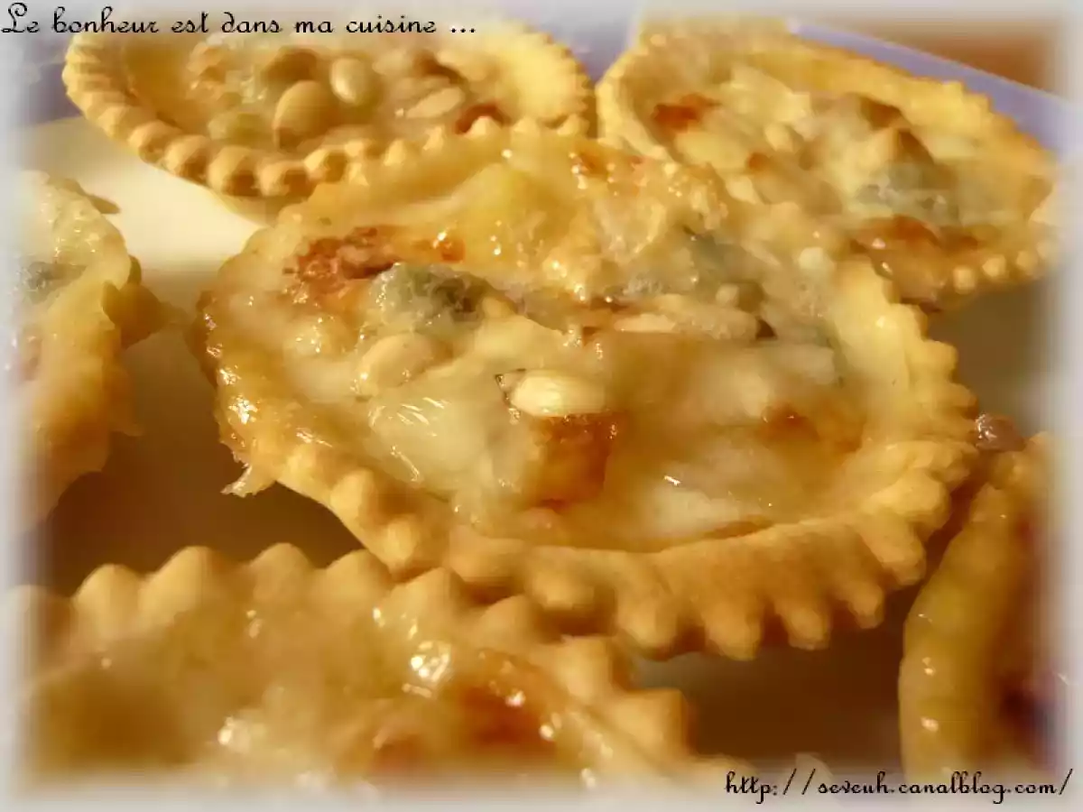 Tartelettes apéritives : poire, gorgonzola et pignons