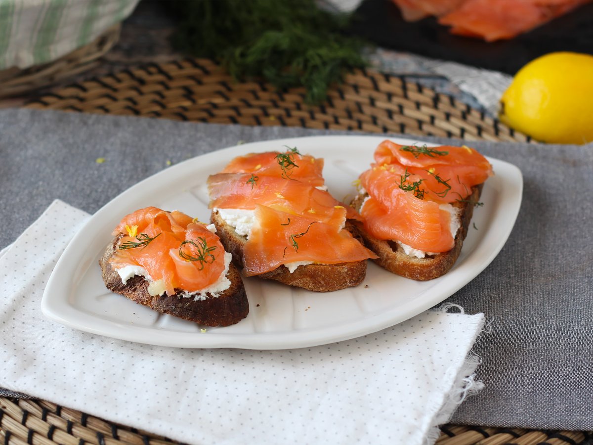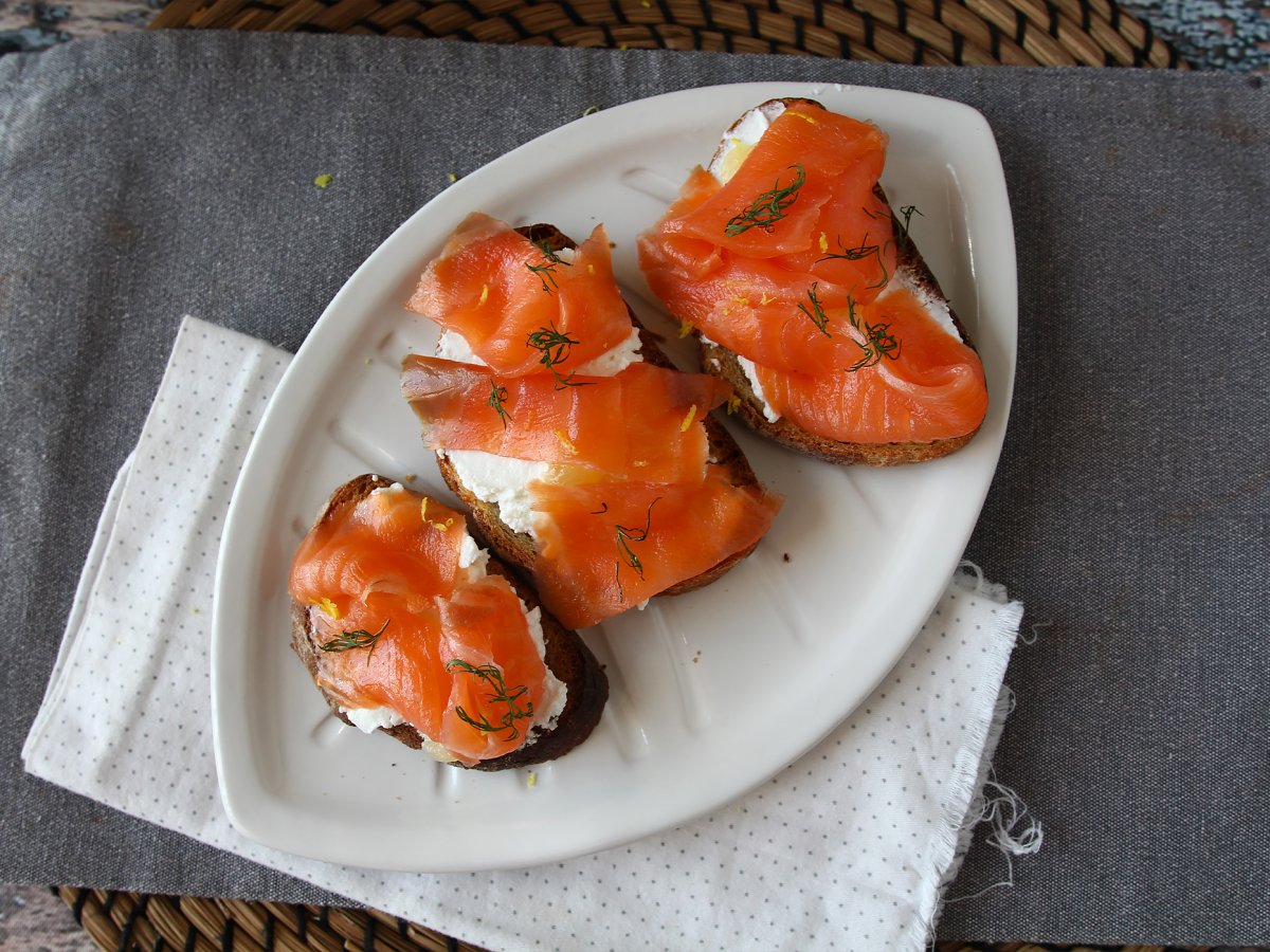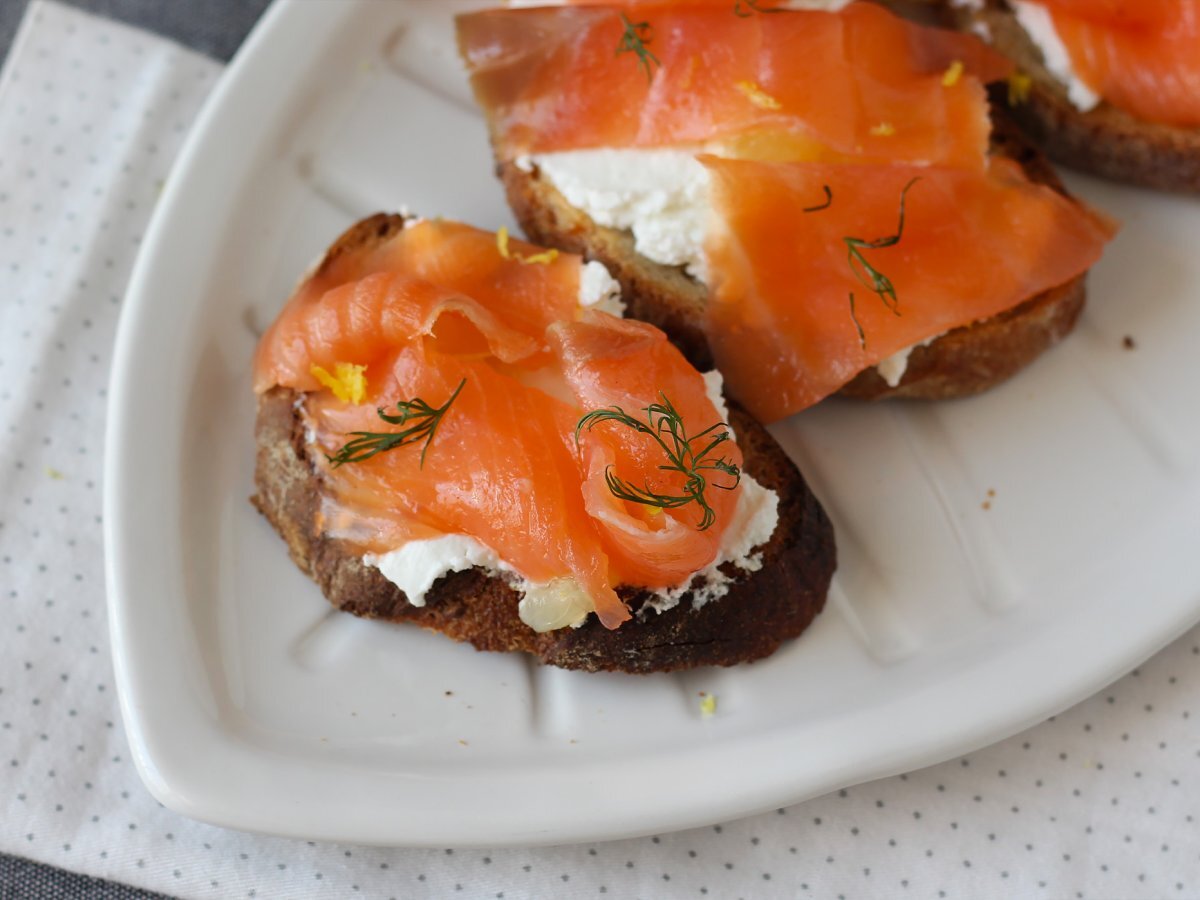 Tartines au fromage de chèvre frais et saumon fumé