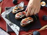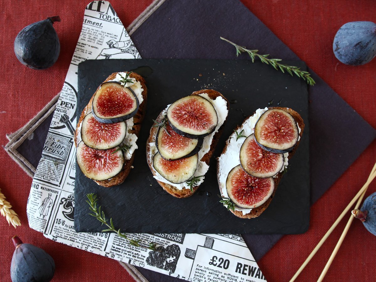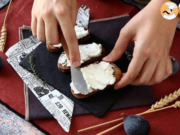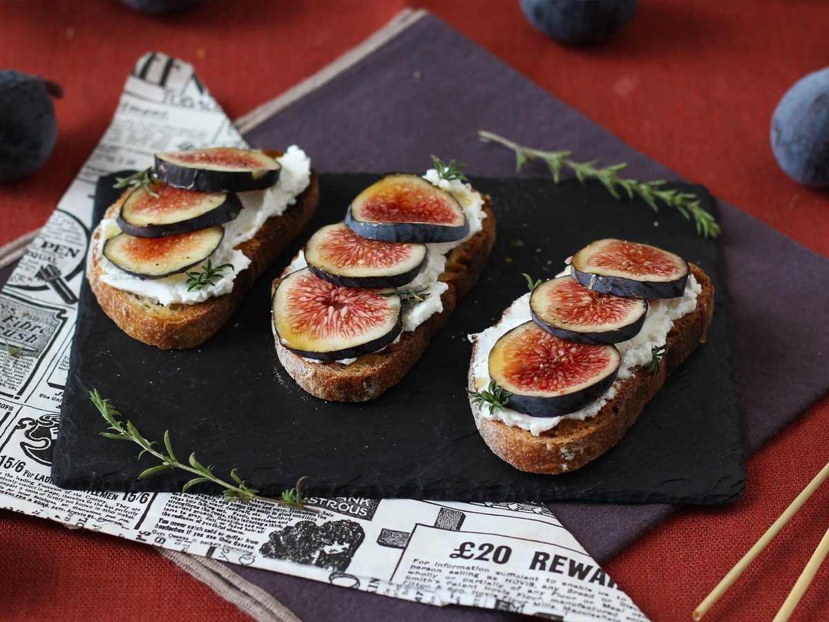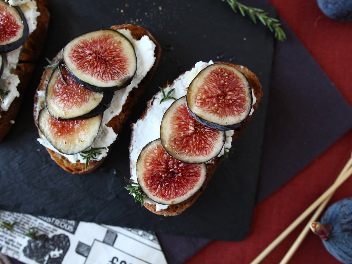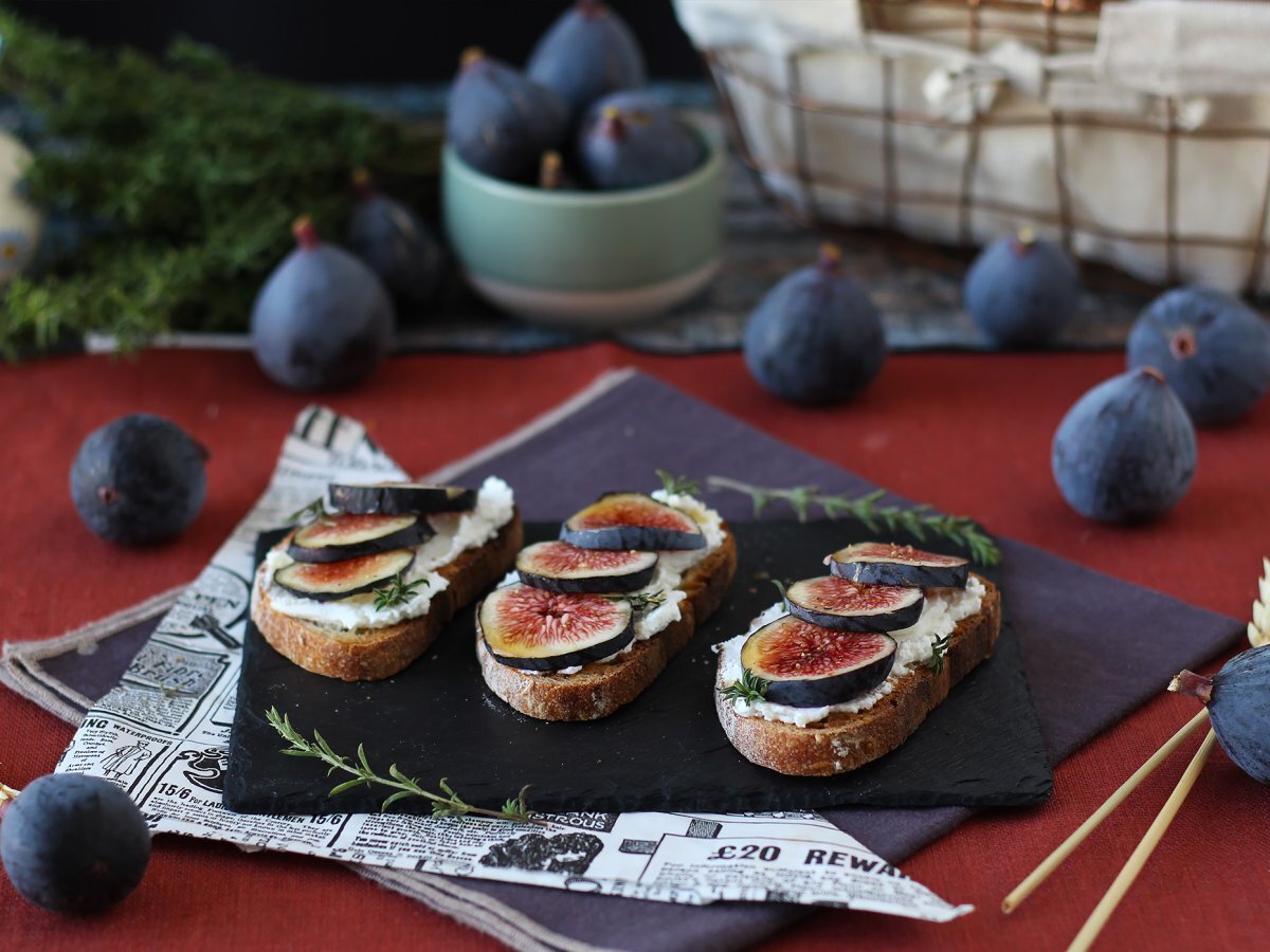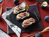 Tartines de figues, fromage de chèvre frais, miel et romarin