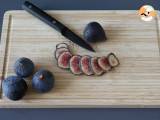 Déposer les tranches de figues par dessus puis ajouter quelques brins de romarin autour des figues (vous pouvez les planter dans le fromage).