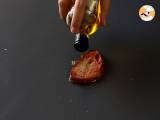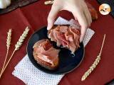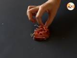 Déposer du jambon Serrano coupé en petits morceaux sur le dessus.