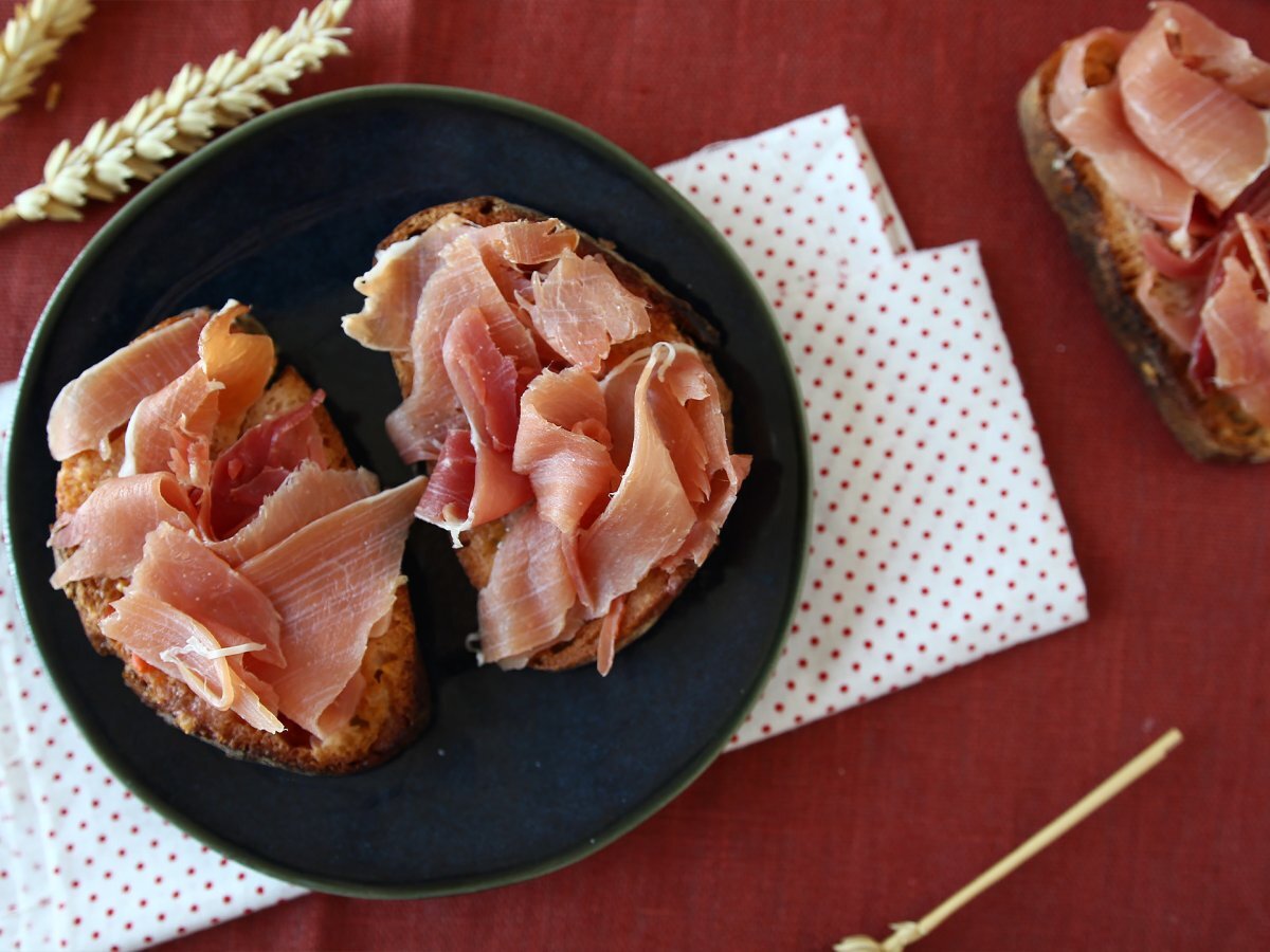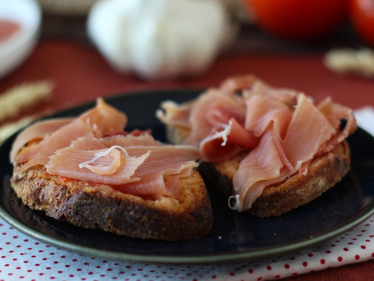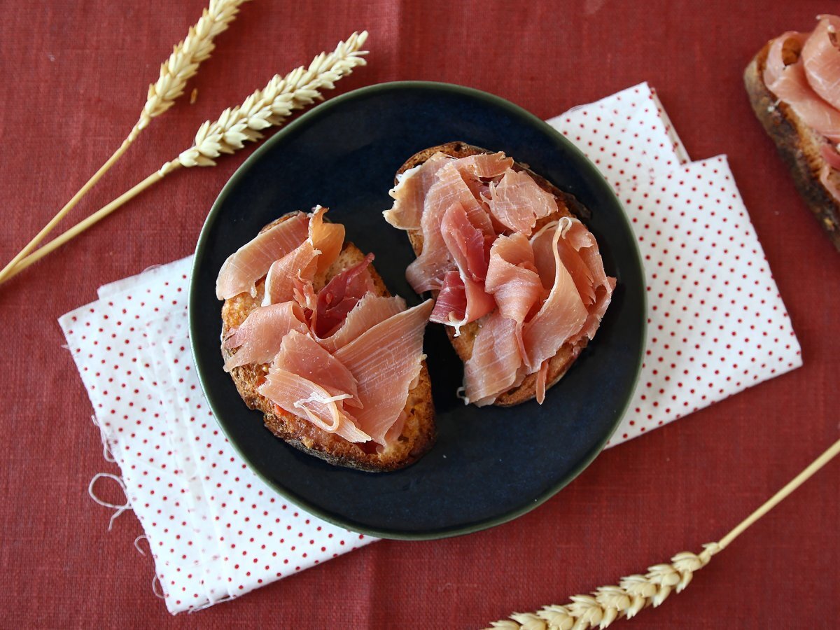 Pour un repas super simple, rapide et sans cuisson, on se dirige toujours vers des tartines ! Aujourd'hui, on prépare une version aux délicieuses saveurs espagnoles, inspirée du fameux "pan con tomate", le célèbre tapas à base de pain grillé à l'ail, avec des tomates râpées disposées simplement sur le pain. Et pour encore plus de gourmandise, on a décidé d'ajouter du jambon Serrano, mais vous pouvez tout à fait les décliner à votre goût :-) A servir en apéritif à grignoter, ou accompagnées d'une salade composée, vous n'avez plus qu'à vous régaler !