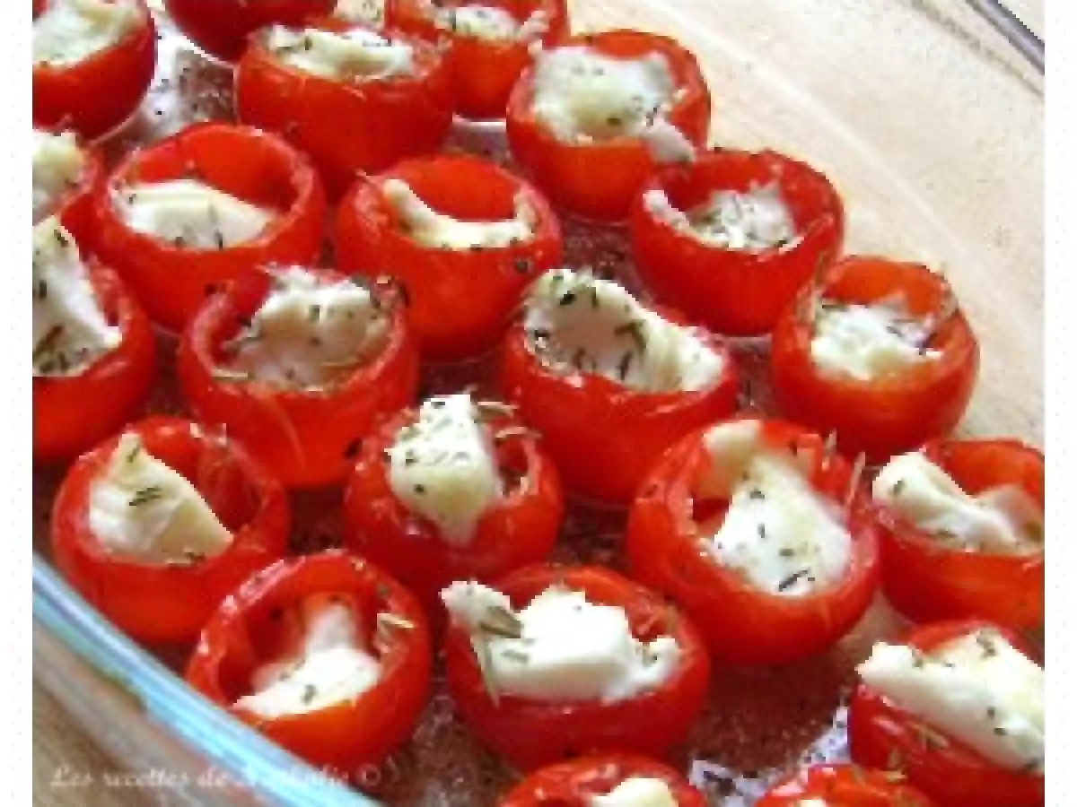 Tomates cerise gratinées au chèvre Apéritiffacile35 min Envoyer cette recette à un ami Imprimer cette page Poser une question à l'auteur Publier votre photo de cette recette Ingrédients 2 2 grappes de tomates cerise 1 cuillère à soupe d’huile d’olive 1/4 de crottin de Chavignol ou de Chavroux Herbes de provence Sel
