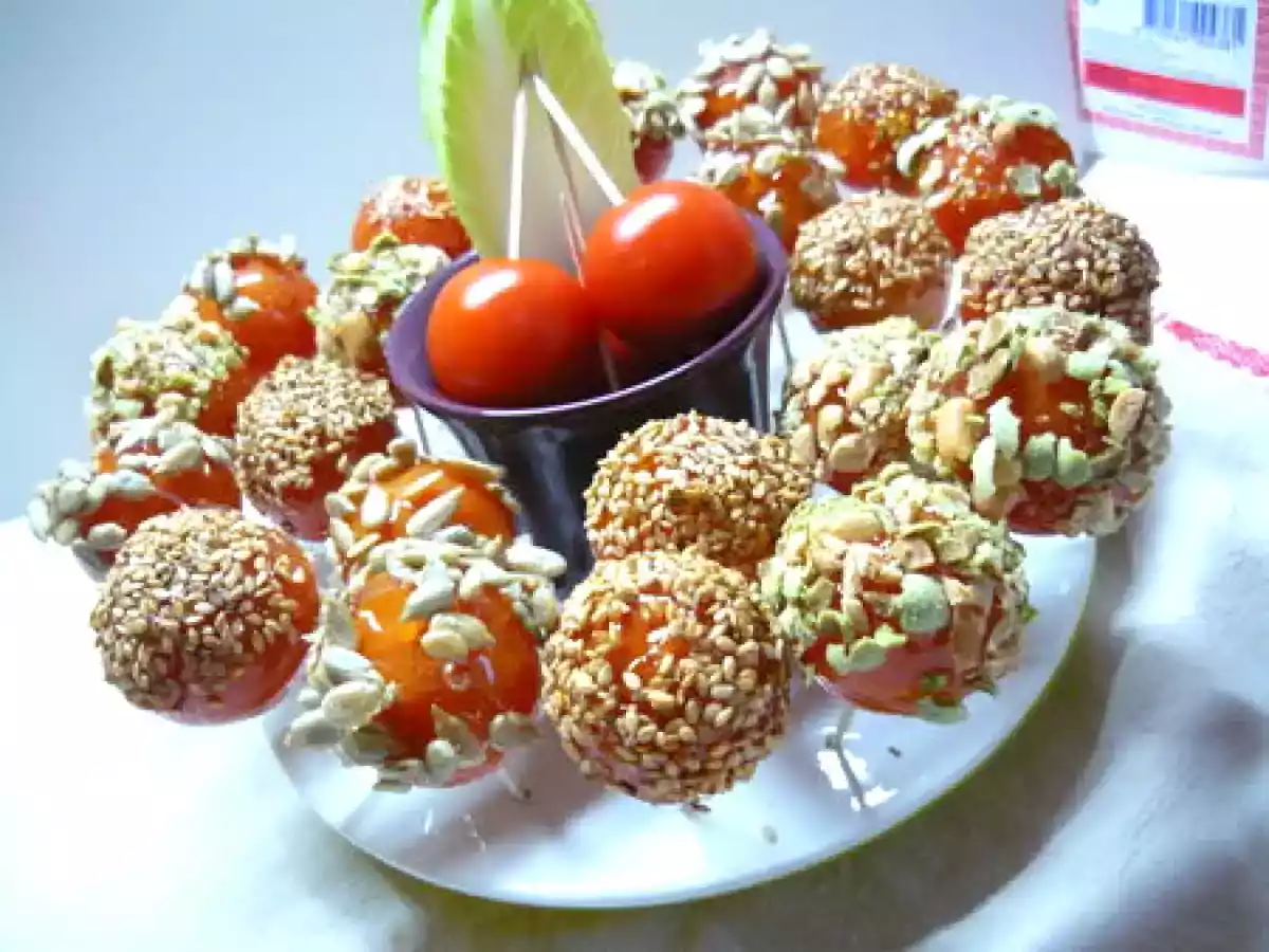 Tomates d'amour votez maintenant Apéritiffacile15 min Envoyer cette recette à un ami Imprimer cette page Poser une question à l'auteur Publier votre photo de cette recette Ingrédients 4 210 g de sucre 6 cuillères à soupe d'eau 30 tomates cerises cacahuètes au wasabi concassées pipas graines de sésame