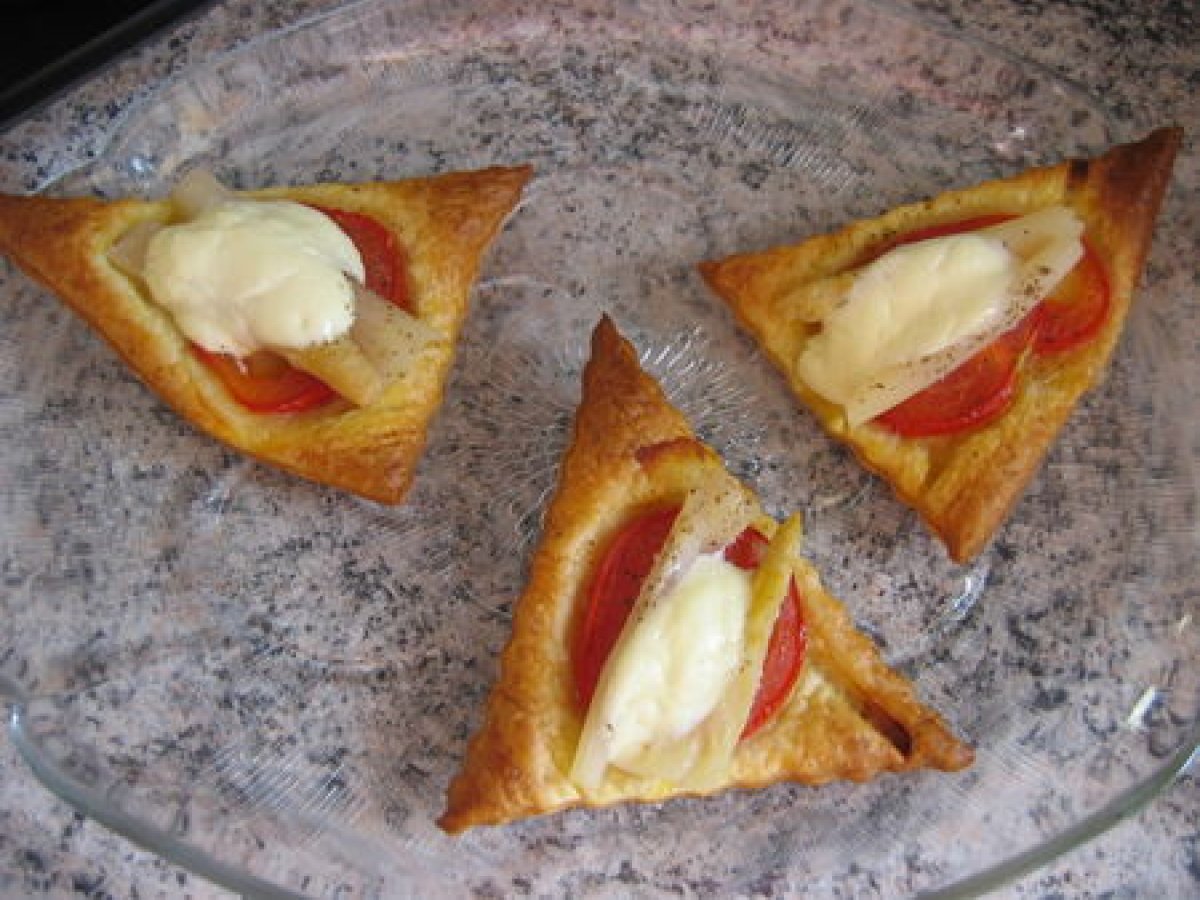 Une recette basique, mais qui fait son effet.... Ces triangles seront parfaits à l'apéritif ou pour un dîner léger avec une salade verte en accompagnement.