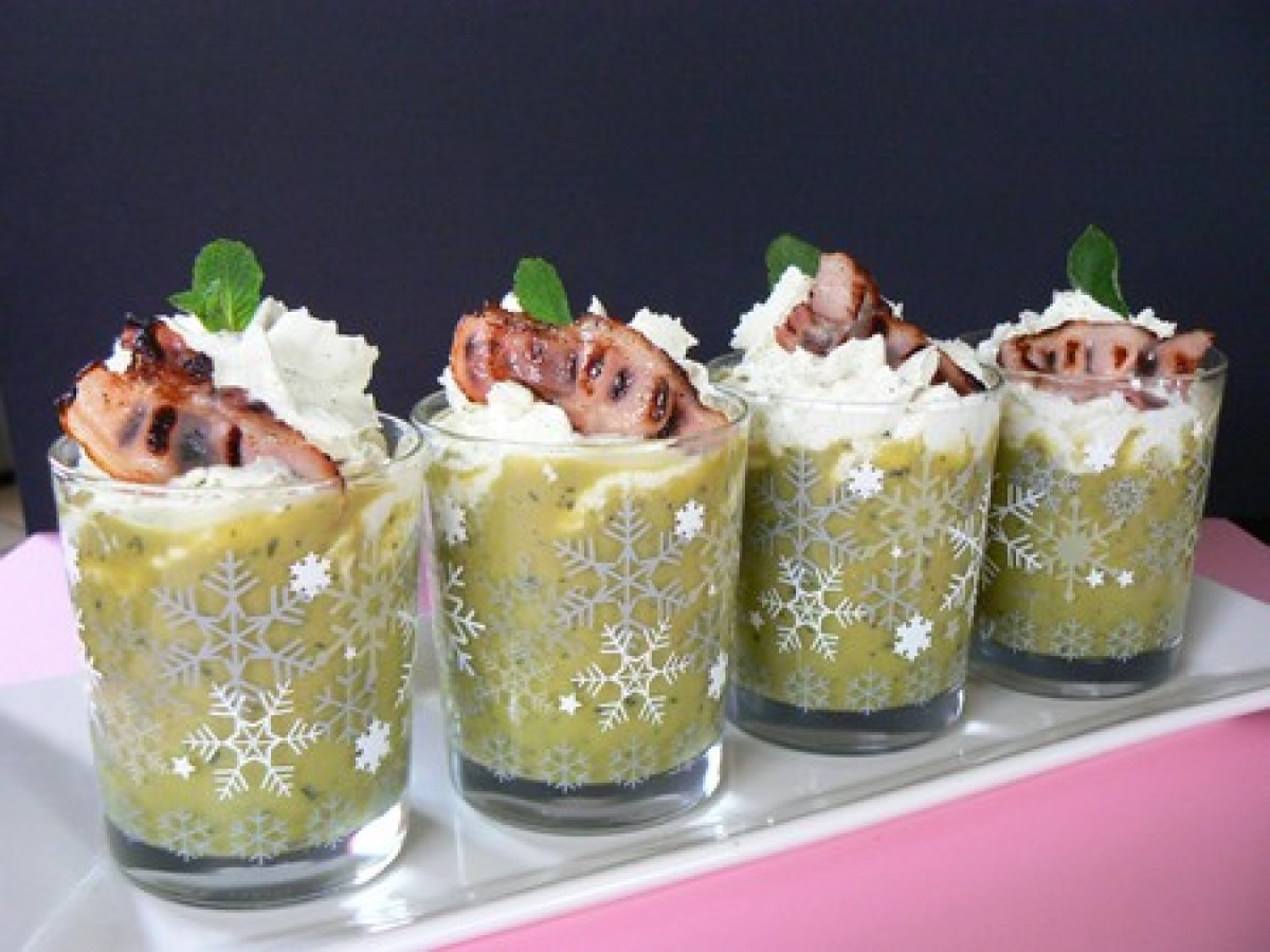 Cette recette peut être servie en apéro de petites verrines de soupes froides (ou chaudes) coiffées d'une chantilly originale qui s'accorde à merveille avec le reste de la verrine.