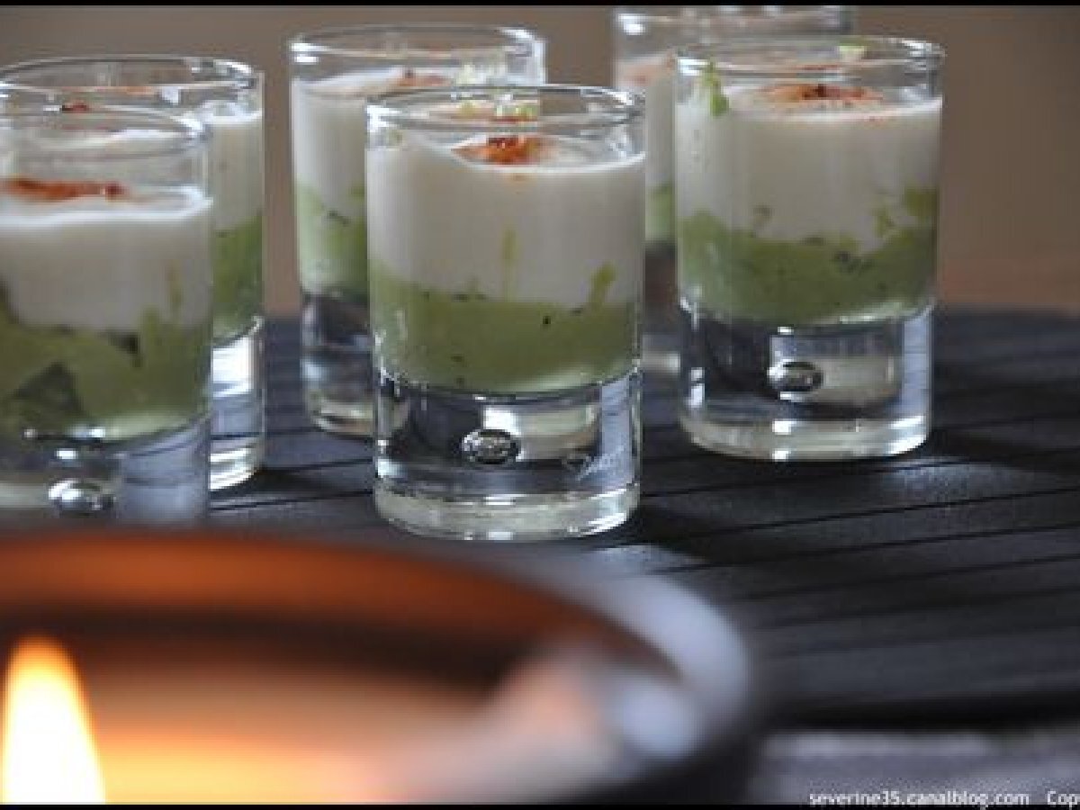 Verrine asperges - avocat PrécédentSuivant Apéritiffacile15 min59 Kcal Envoyer cette recette à un ami Imprimer cette page Poser une question à l'auteur Publier votre photo de cette recette Ingrédients 6 Mousse à l'asperge : 10 petites asperges 100 g de fromage blanc sel poivre Crème d'avocat : 1 avocat bien mûr 1 cuillères à soupe de jus de citron poivre du paprika
