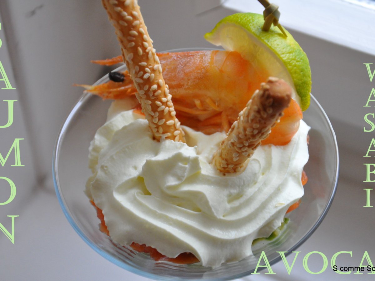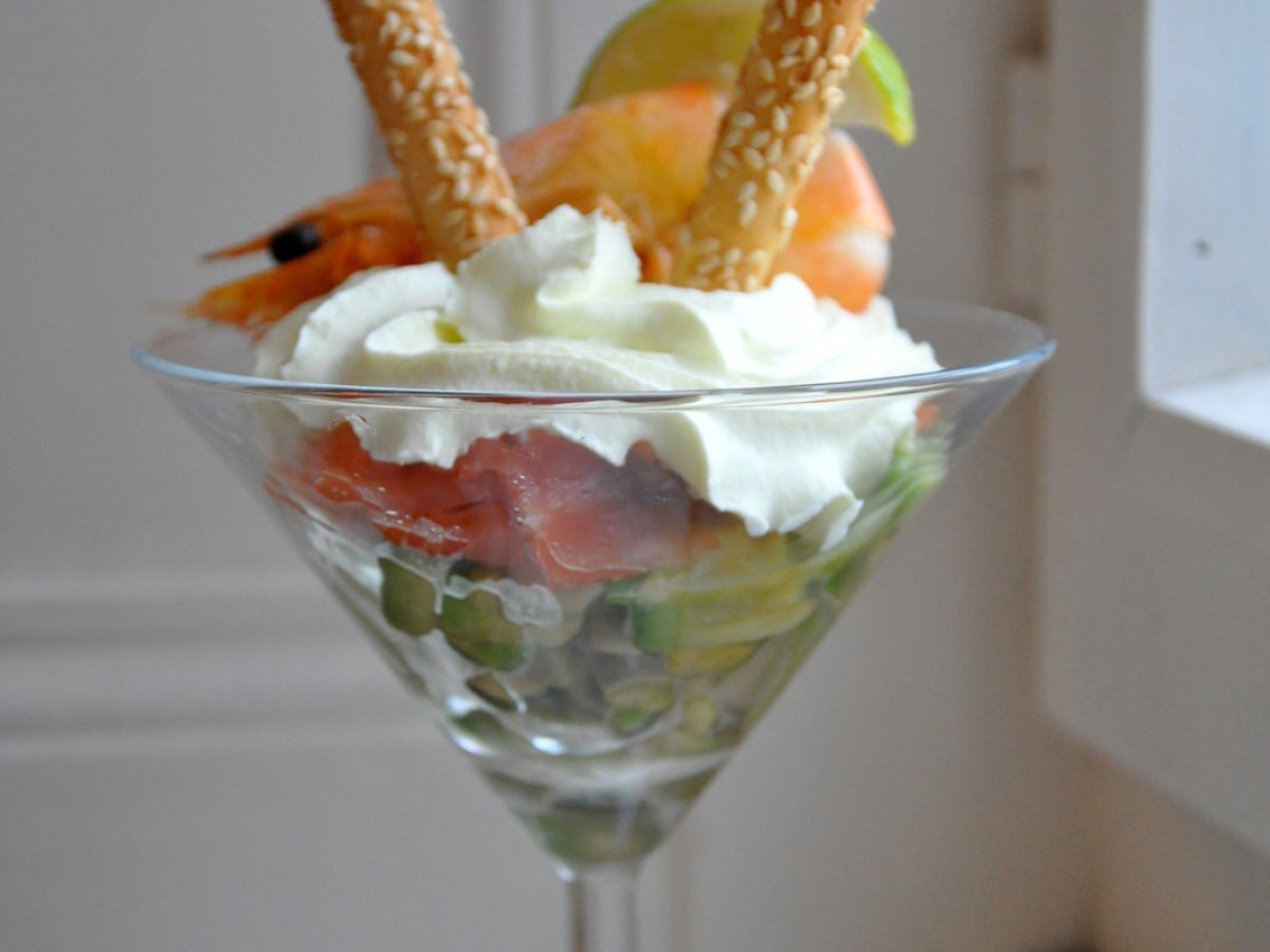 Verrine de saumon fumé à la chantilly de wasabi votez maintenant PrécédentSuivant Apéritiffacile15 min Envoyer cette recette à un ami Imprimer cette page Poser une question à l'auteur Publier votre photo de cette recette Ingrédients 6 300 g de saumon fumé 2 avocats 2 citrons verts 15 cl de crème liquide entière 9 g de wasabi 6 grosses crevettes cuites sel poivre 6 piques en bambou 6 bâtonnets au sésame