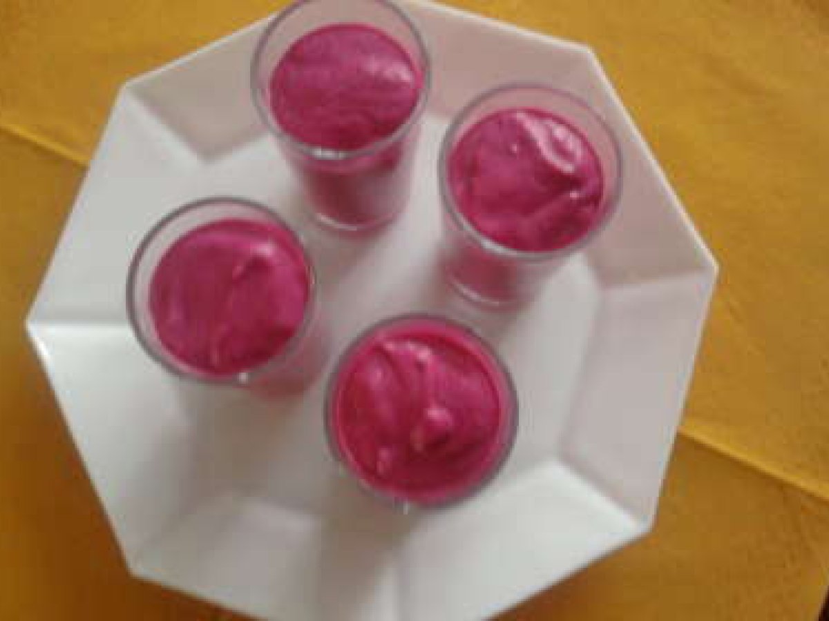 Verrine mousse de betteraves PrécédentSuivant Apéritiffacile15 min70 Kcal Envoyer cette recette à un ami Imprimer cette page Poser une question à l'auteur Publier votre photo de cette recette Des mousses légères et colorées Ingrédients 8 200 gr de betterave cuite 150 gr de crème fraîche épaisse 1 cs de vinaigre une pincée de sel une pincée de poivre