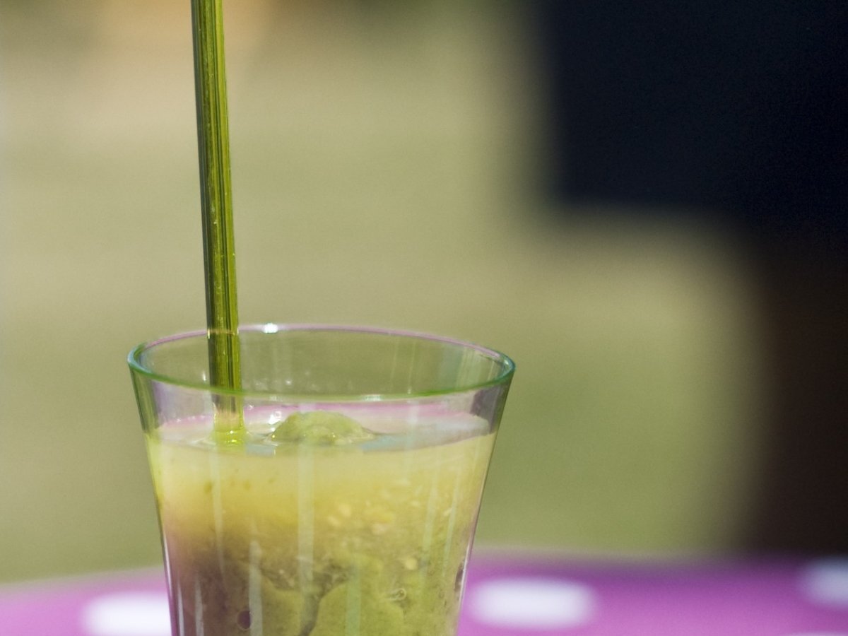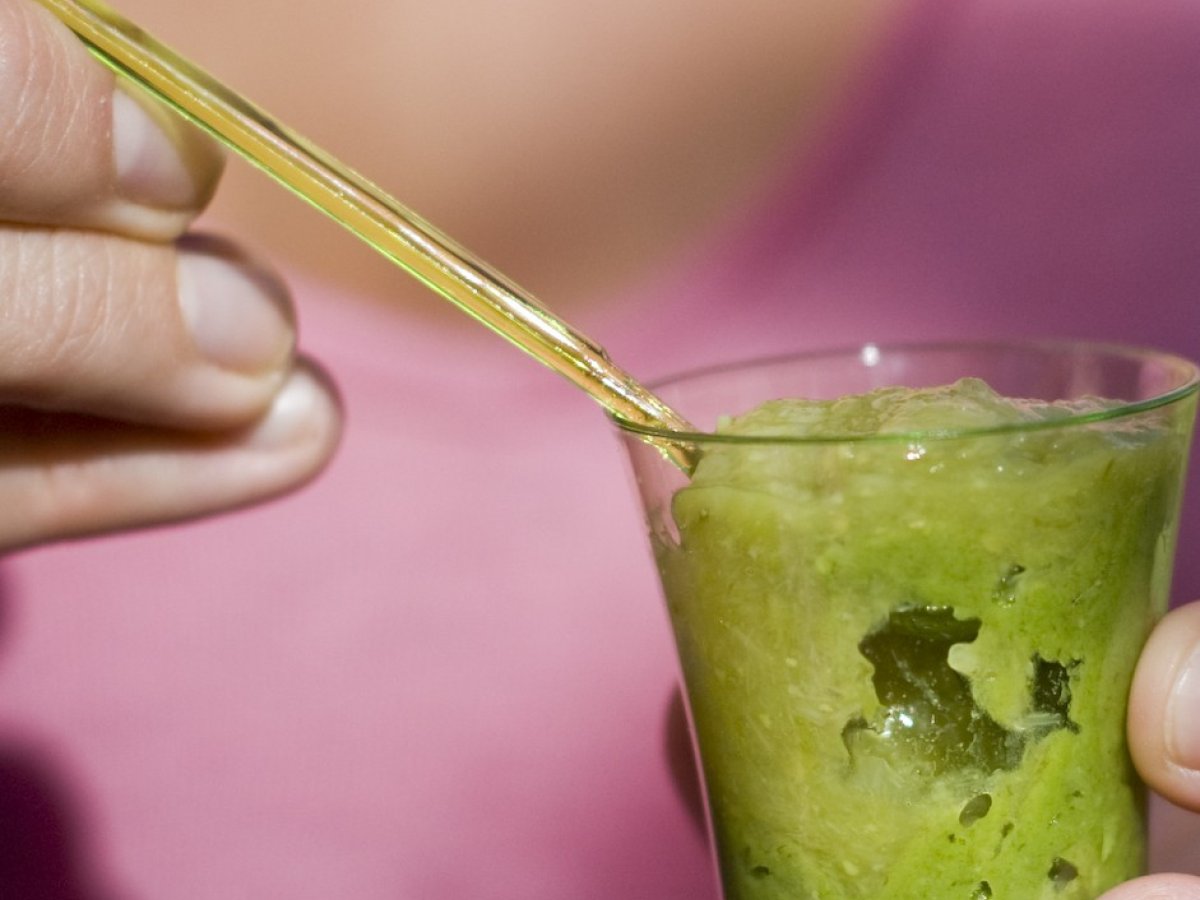 Voici un premier apéritif préparé pour mes Noces de Coton: une petite purée de petits pois à la menthe surmontée d’un velouté d’asperges. On pourrait aussi en faire une super entrée, dans une assiette creuse, avec dans le fond le velouté d’asperges et une belle quenelle de purée de petits pois au milieu.