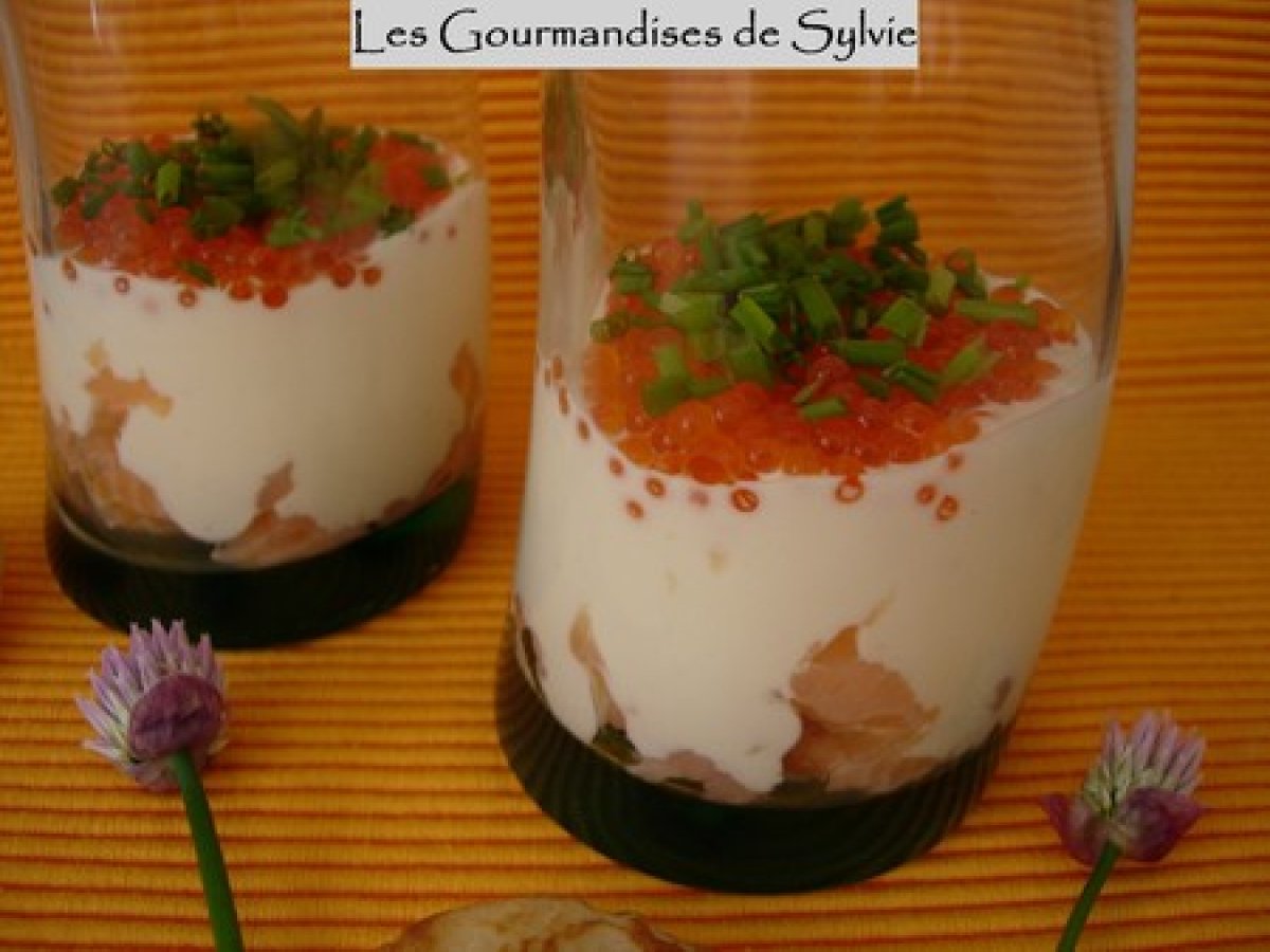Une verrine scandinave absolument inratable et qui se laisse agréablement savourer...Vous pouvez les accompagner de petits blinis tiédis au four ou de pain de mie brioché toasté.