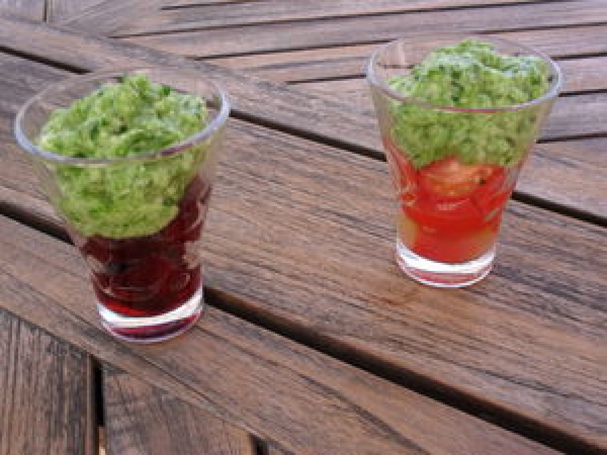 Des verrines jolies,savoureuses et originales.J'ai été surprise par la mousse de persil qui en plus d'être jolie ,est très agréable en bouche. En partant de l'idée de la mousse de persil,j'ai réalisé deux sortes de verrines.Des verrines betterave-persil et d'autres tomate-persil.