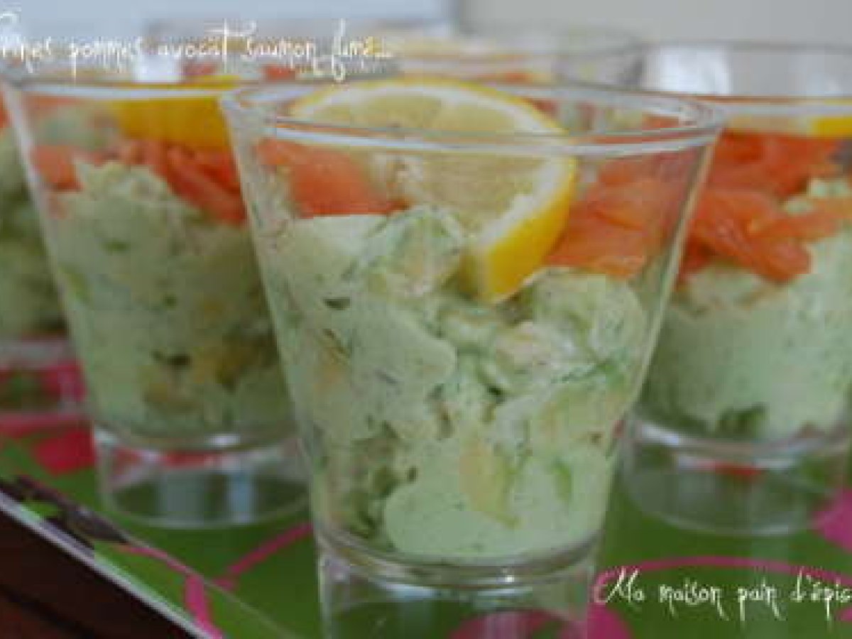 Verrines avocat saumon fumé Apéritiffacile10 min266 Kcal Envoyer cette recette à un ami Imprimer cette page Poser une question à l'auteur Publier votre photo de cette recette Ingrédients 8 6 tranches de saumon fumé 3 avocats bien mûrs 3 pommes granny smith 200g de fromage ail et fines herbes 10 cl de crème liquide 5 cl de jus d'un citron Coût estimé: 15.48Euros€ (1.93€/part)