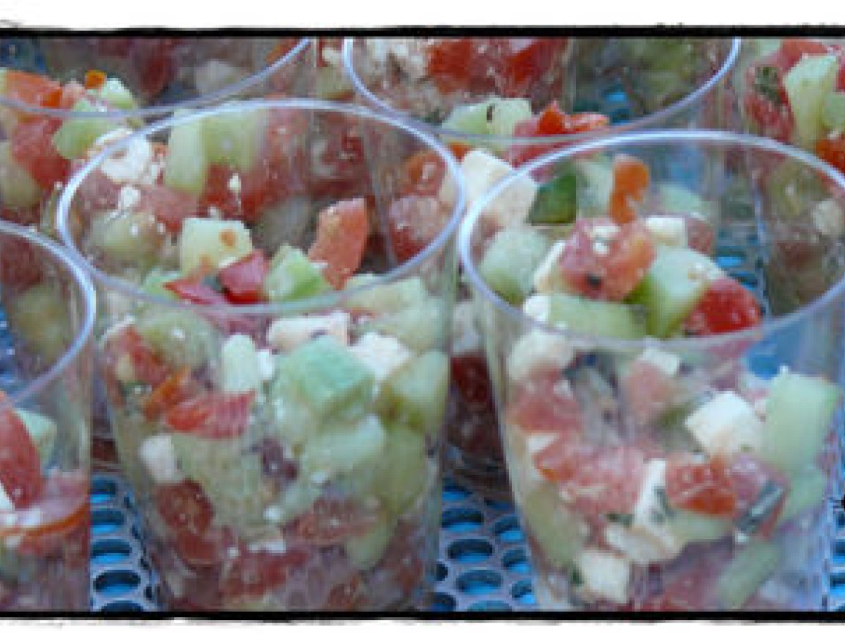 Verrines fraicheur pour un apéritif estival votez maintenant Apéritiffacile10 min Envoyer cette recette à un ami Imprimer cette page Poser une question à l'auteur Publier votre photo de cette recette Ingrédients 2 du concombre des tomates fêta basilic huile d'olives vinaigre balsamique Mousse de gaspacho : 350 g de gaspacho 150 g de crème liquide sel poivre des grissini pour la déco un siphon et 2 cartouches
