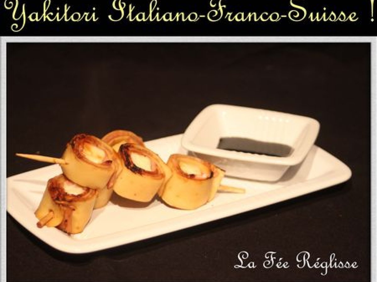 Yakitori de pâtes, jambon et emmenthal votez maintenant Apéritiffacile25 min Envoyer cette recette à un ami Imprimer cette page Poser une question à l'auteur Publier votre photo de cette recette Ingrédients 8 Pour les yakitori : 6 feuilles de lasagnes 4 à 6 tranches de jambon 50 g d'emmenthal en blog Poivre Pour la sauce de laquage : 2 cuillères à soupe de sauce soja 2 cuillères à soupe de mirin 1 gousse d'ail 1/8 cuillère à café de gingembre en poudre