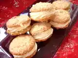 Ingrédients: 6 blancs d'oeufs 125 g d'amandes en poudre 160 g de sucre 25 g de farine des amandes effilées pour parsemer le dessus des biscuits pour la crème:...