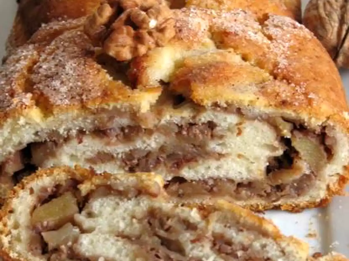 Ce sont les gâteaux du réconfort hivernal, des fêtes de fin d'année, ceux qu'on déguste lentement au coin du feu, les joues et le nez rougis par le froid, avec un thé, un café ou un vin épicé, en faisant durer le plaisir. Voici l'une des innombrables recettes possible de gâteau roulé à la mode austro-slave. Une version simple et rustique aux pommes et aux noix.
