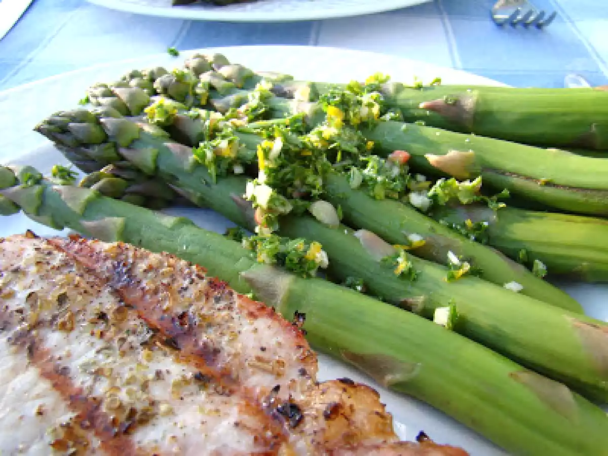 Asperges à la gremolata d'ail des bois - 1 pt ww votez maintenant Autrefacile15 min104 Kcal Envoyer cette recette à un ami Imprimer cette page Poser une question à l'auteur Publier votre photo de cette recette Ingrédients 2 Une grosse botte d'asperges Une poignée de persil Deux pousses d'ail des bois Le zeste d'une demi orange 1 cuillère à table d'huile d'olive 1 cuillère à thé de vinaigre de vin rouge Sel et poivre au goût
