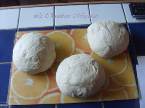 Débarrasser la pâte sur le plan de travail fariné, découper une dizaine de pâtons, les façonner en boules grossières et laisser se détendre une vingtaine de minutes. Couvrir le lèche-frite de papier sulfurisé légèrement fariné.