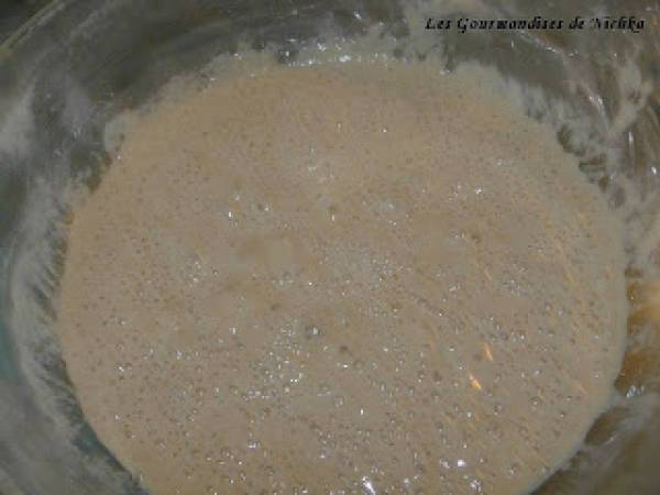 Remuer le tout avec un fouet jusqu'à dissolution des grumeaux (moins de 5 minutes). Déposer un film plastique sur votre saladier, faire quelques trous avec la pointe d'un couteau, et entreposer votre saladier près d'une source de chaleur, à l'abri des courants d'air.