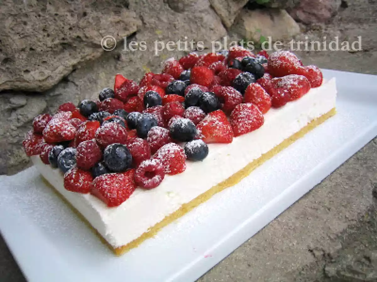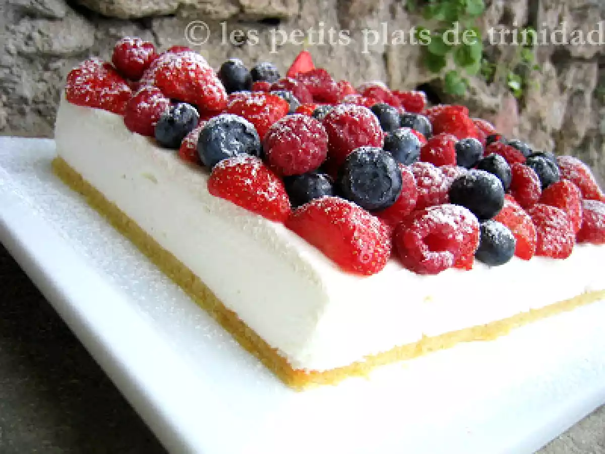 Bavarois au fromage blanc et fruits rouges PrécédentSuivant Autrefacile2 h 20 m810 Kcal Envoyer cette recette à un ami Imprimer cette page Poser une question à l'auteur Publier votre photo de cette recette C'est un gâteau très spectaculaire proposé entier. Ingrédients 4 3 oeufs 125 g de sucre. 75 g de beurre fondu 125 g d'amande en poudre 1 petit bouchon de rhum, ou quelques gouttes d'amandes amères. 4 feuilles de gélatine (8 g) eau froide 80 g de sucre glace 400 g de fromage blanc 250 g de fraises 250 g de myrtilles 250 g de framboises Coût estimé: 15.57Euros€ (3.89€/part)