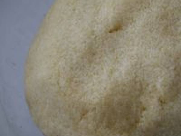 - Mélanger puis aplatir la pâte sur un papier sulfurisé en formant un cercle. Réserver. Diviser la pâte de semoule en deux boules puis les aplatir d'environ 1cm