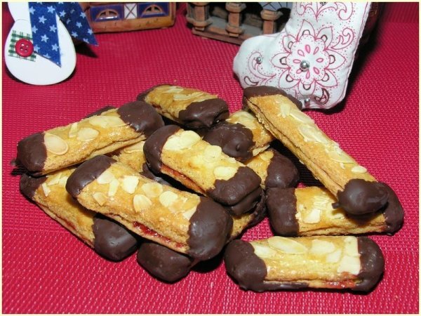 Bredele - bâtons chocolat-amandes à la framboise votez maintenant PrécédentSuivant Autrefacile45 min696 Kcal Envoyer cette recette à un ami Imprimer cette page Poser une question à l'auteur Publier votre photo de cette recette Ingrédients 4 200 g de farine 100 g de sucre en poudre 3 sachets de sucre vanillé 100 g de beurre mou 1 oeuf 2 cuillère à café de levure chimique 1 pincée de sel amandes effilées 120 g de chocolat noir gelée de framboises Coût estimé: 3.52Euros€ (0.88€/part)