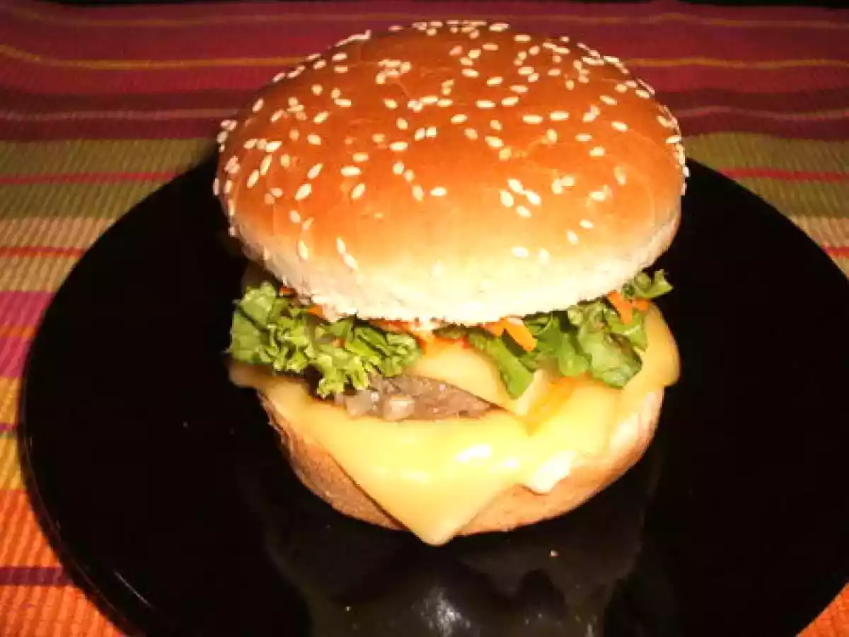 Burger de boeuf carotte & cumin Autrefacile27 min853 Kcal Envoyer cette recette à un ami Imprimer cette page Poser une question à l'auteur Publier votre photo de cette recette Ingrédients 2 125 g de boeuf haché 1/2 oignon 1 petite carotte 1 cuillère à café de cumin vinaigre huile 4 tranches de gouda un peu de salade craquante ciselée 2 pains à hamburger Pour la sauce : 4 cuillères à soupe de mayonnaise 1 cuillère à café de vinaigre 1/4 d'oignon très finement haché 1/4 cuillère à café de moutarde 1 cuillère à café de sucre sel poivre