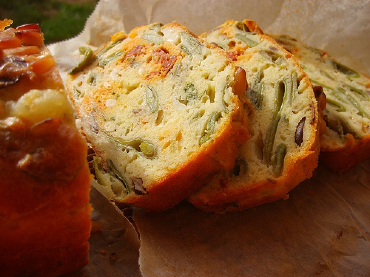 Cake haricots/champignons + chorizo et mozza...et pignons (oui oui, cake gyfoutou)
